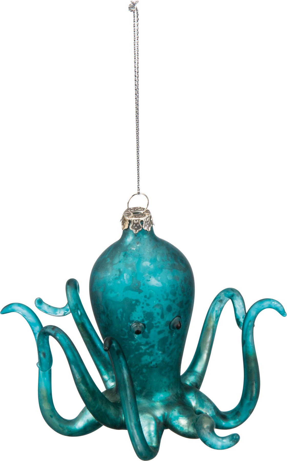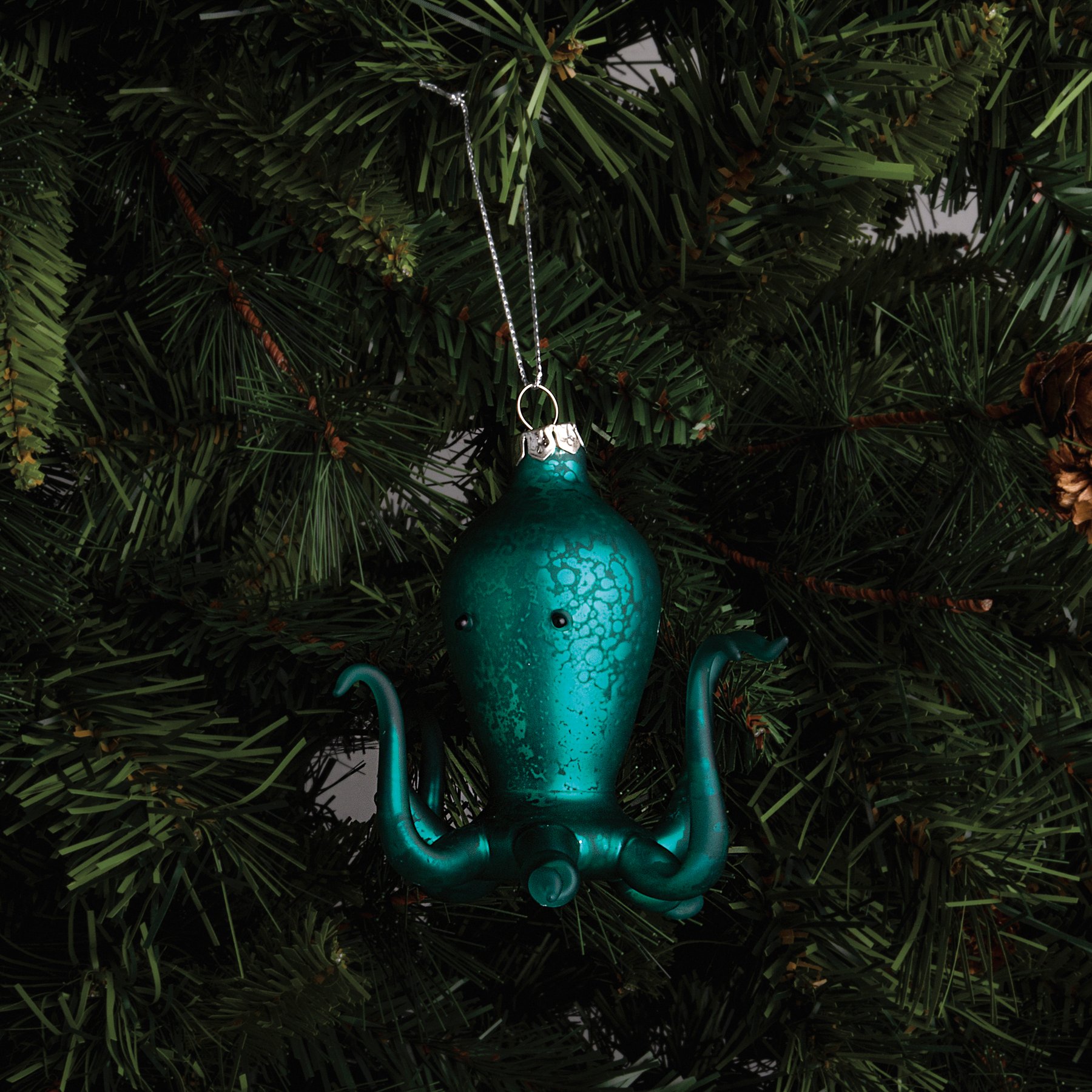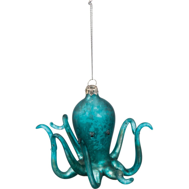 A vintage - inspired glass octopus Christmas ornament from our Beach Collection that's perfect for a beach-themed Christmas or to gift. Contains metal topper with loop for easy hanging and decorating with this octopus ornament.