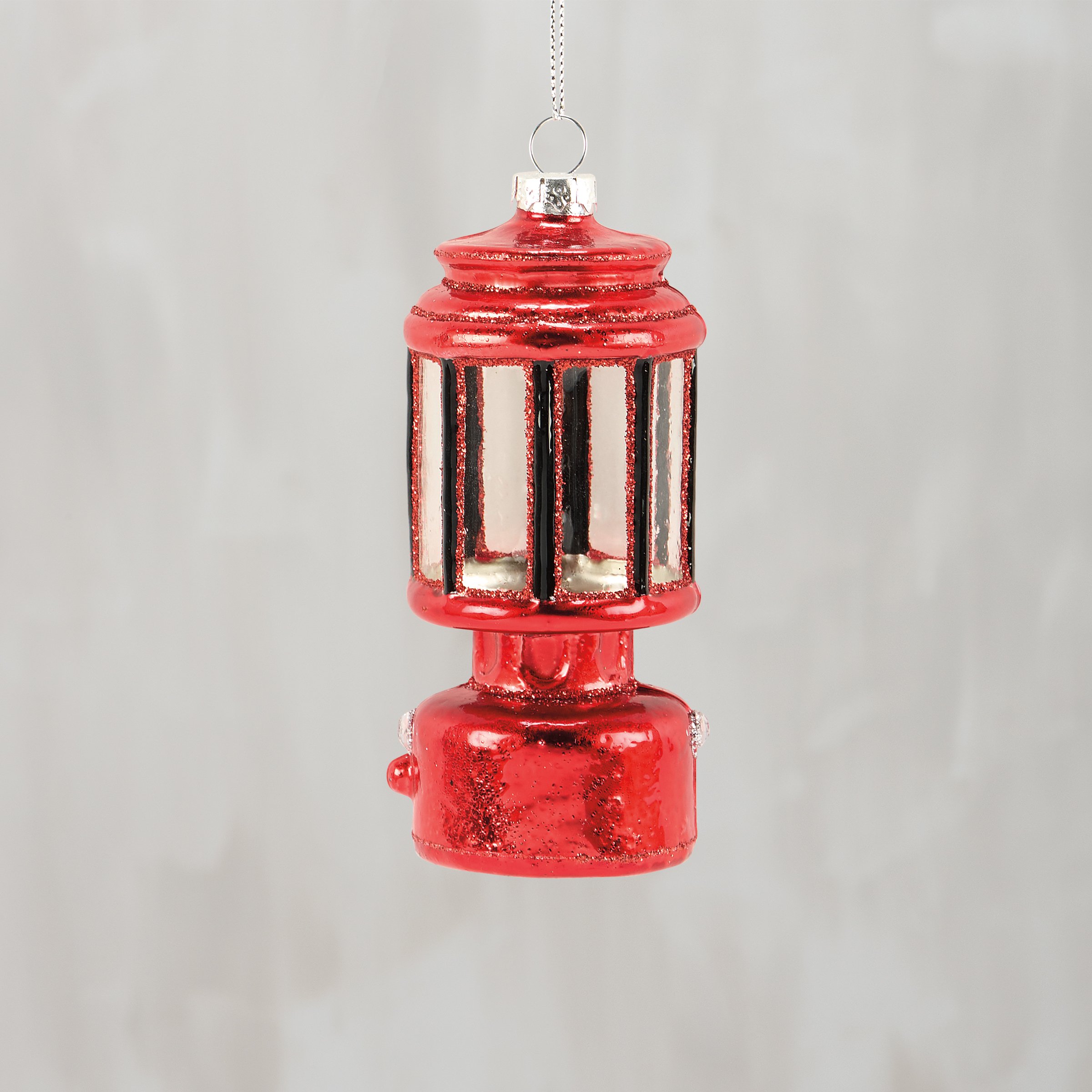 A glass ornament from our Christmas Collection displaying a fun camp lantern design with painted details and glitter accents. Our glass Camp Lantern ornament is ready to hang for display via the included top loop. A fun camping-themed gift perfect for adding personality to a Christmas tree.