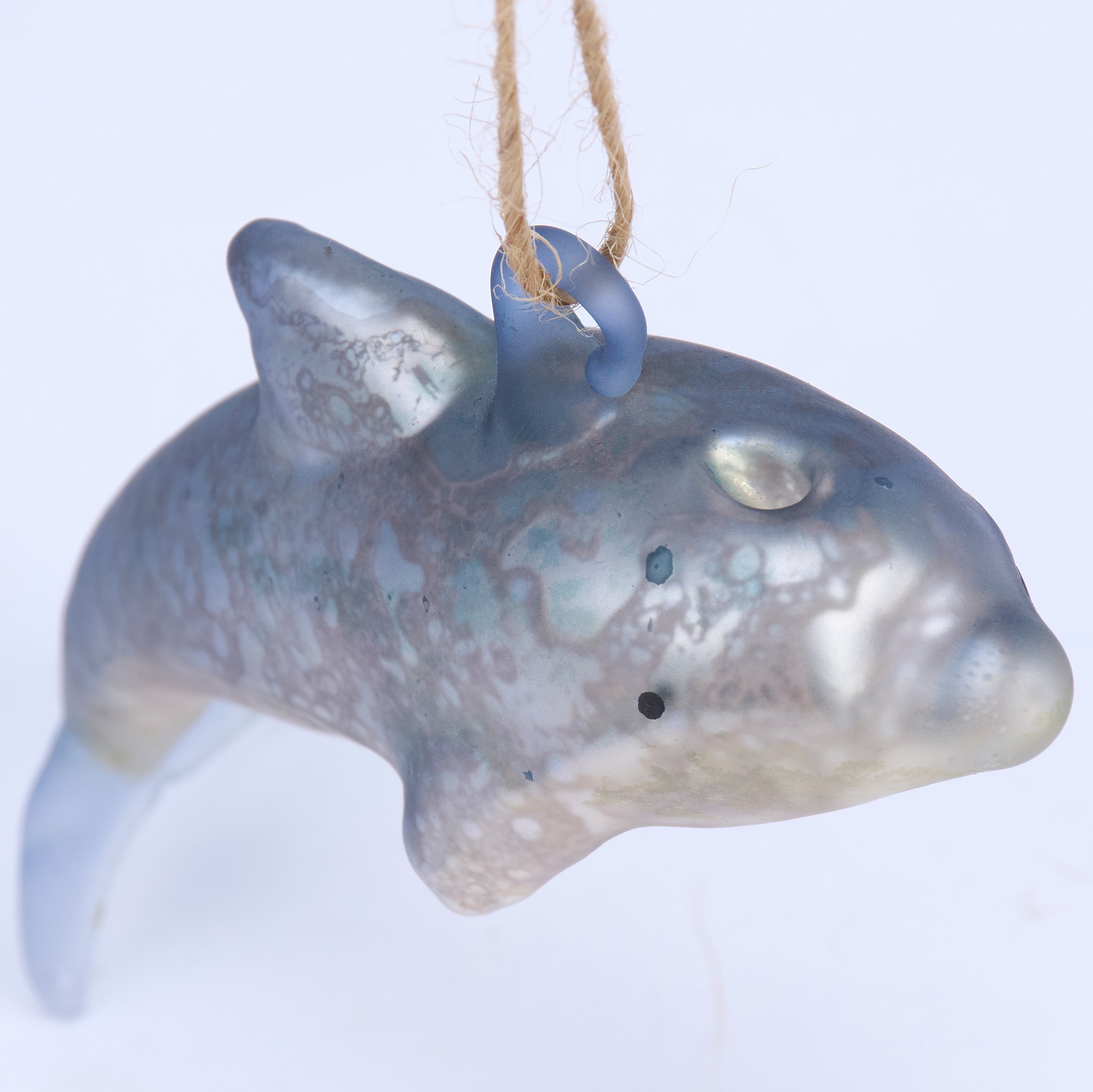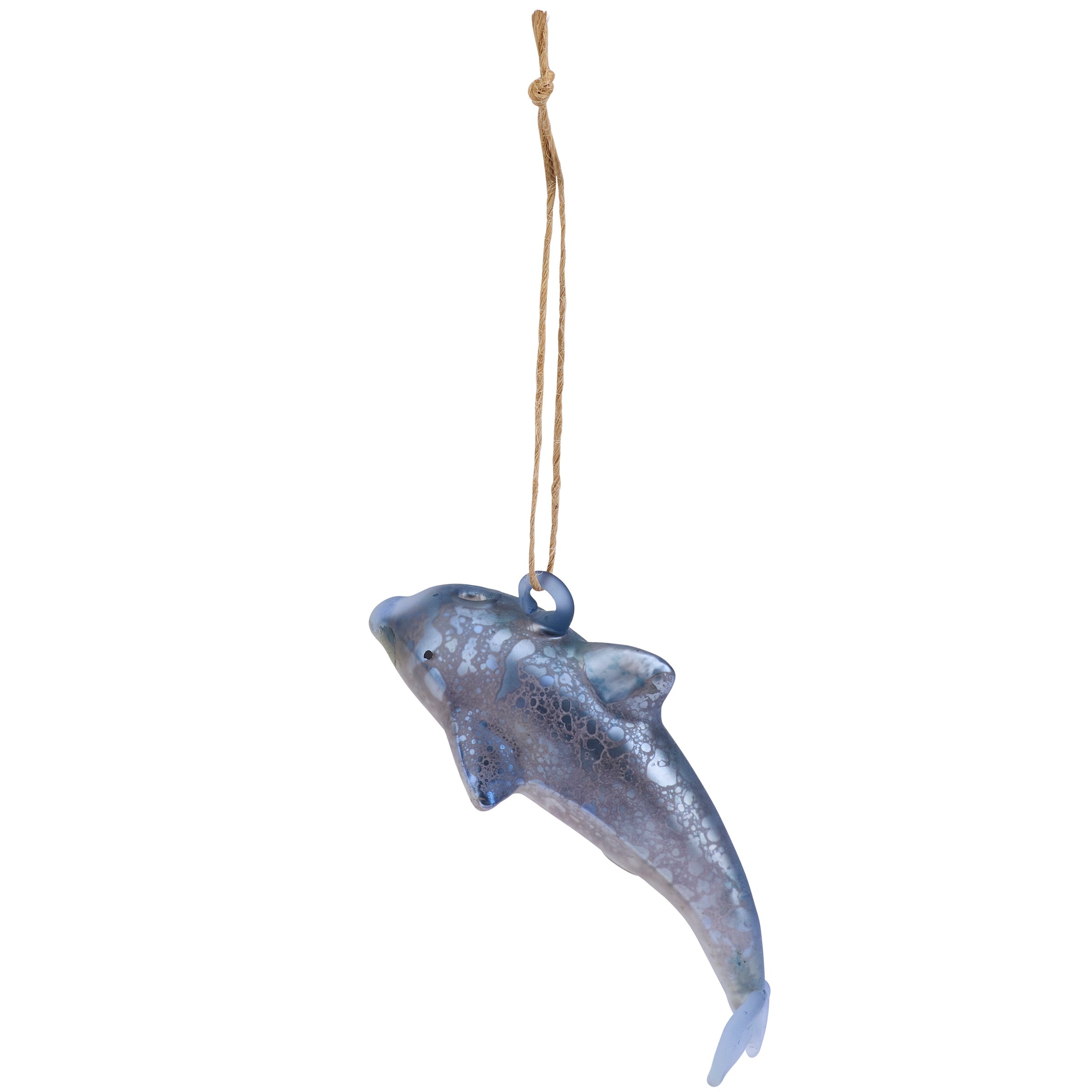 A glass ornament from our Beach Collection displaying a dolphin design with painted details. Our glass Dolphin ornament is ready to hang for display via the included top loop and string hanger. A vintage style gift perfect for adding personality to a Christmas tree or for everyday beach themed displays.