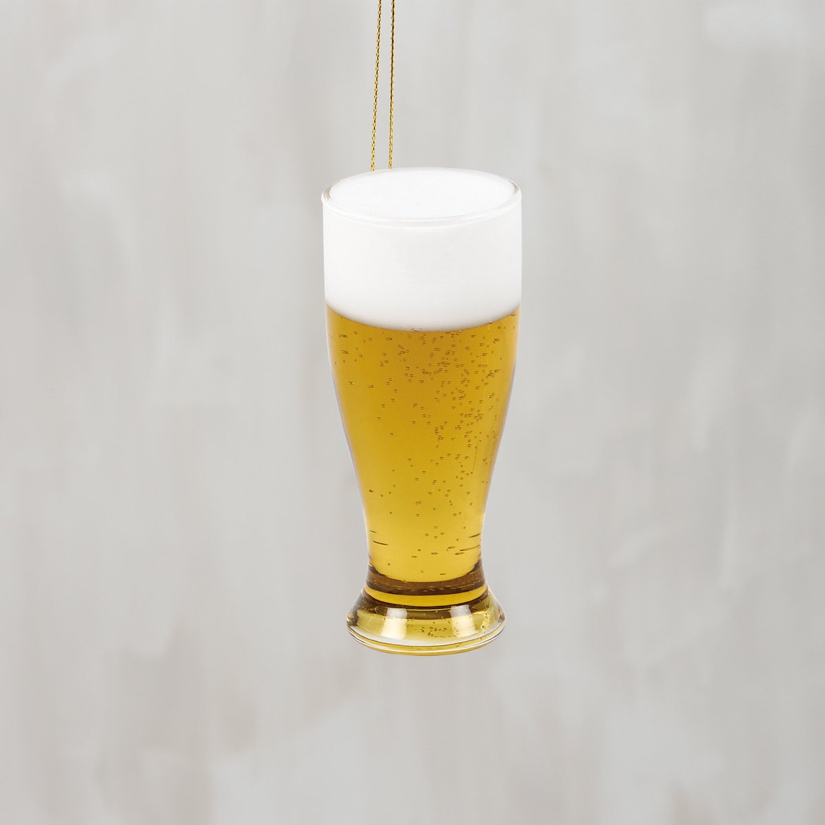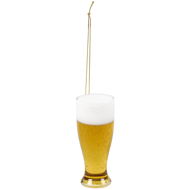 A glass ornament from our Art Deco Collection displaying a fun beer inspired design of a pint glass with resin to resemble draft beer in the glass. Our glass Draft Beer ornament is ready to hang for display via the included top loop. A vintage style gift perfect for adding personality to a Christmas tree or for everyday beer-themed displays.