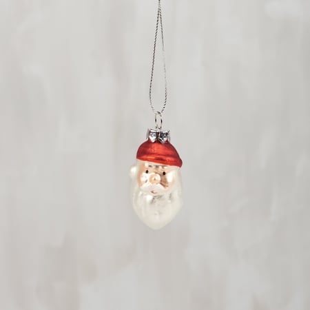 A set of glass ornaments from our Christmas Collection including six Santas with glitter accents. Our glass Santa ornament set is ready to hang via the included top loops and string hangers. Seasonal ornament set is packaged in a cardboard box with acrylic lid to easily see designs. A vintage set of seasonal home accents perfect for a Christmas tree or for gifting.
