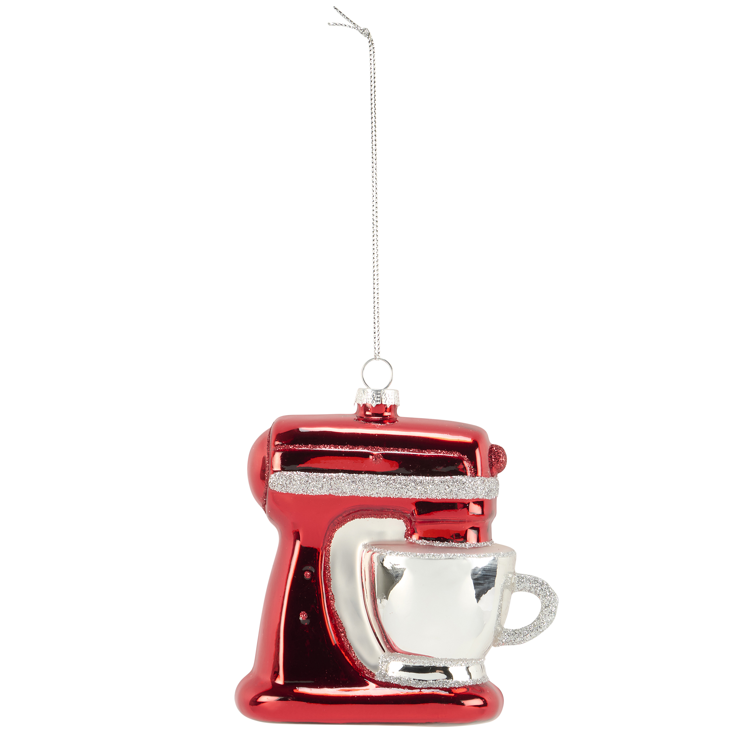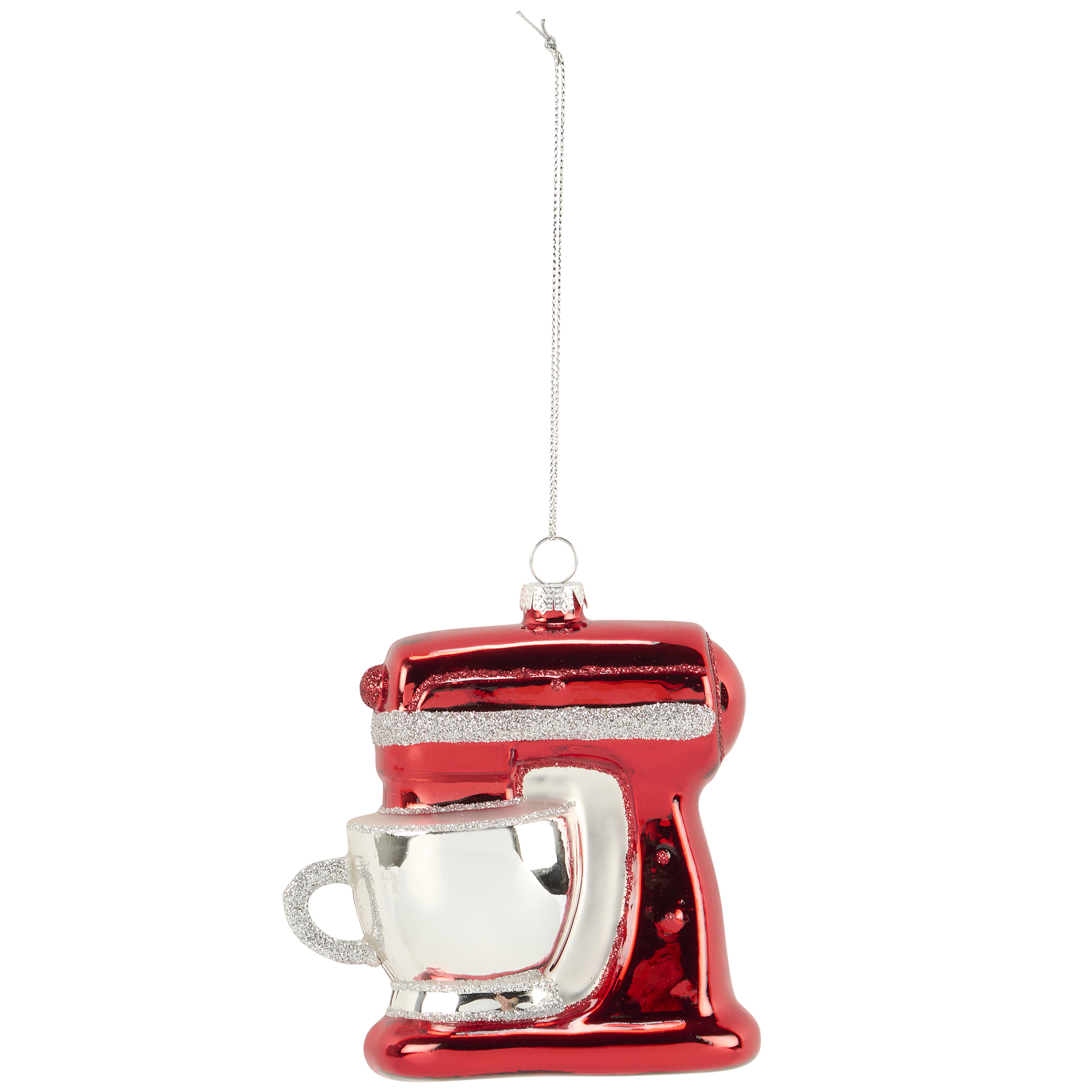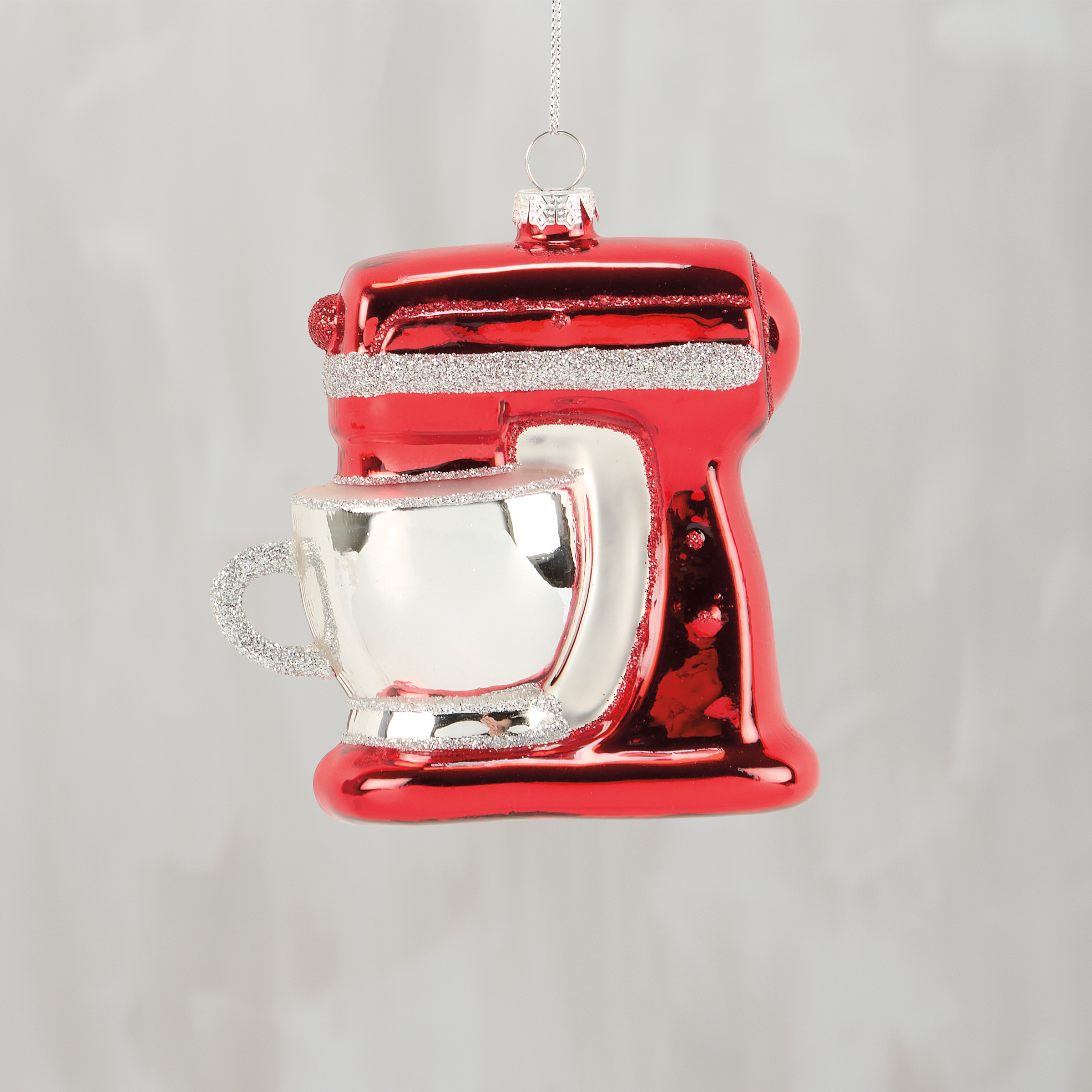 A glass ornament from our Christmas Collection displaying a fun kitchen stand mixer design with painted details and glitter accents. Our glass Stand Mixer ornament is ready to hang for display via the included top loop. A fun kitchen-themed gift perfect for adding personality to a Christmas tree.
