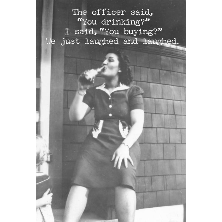Made in the USA. Outside: The officer said," You drinking?" I said, "You Buying?" We just laughed and laughed. Inside: Let's get together soon. Bring bail money