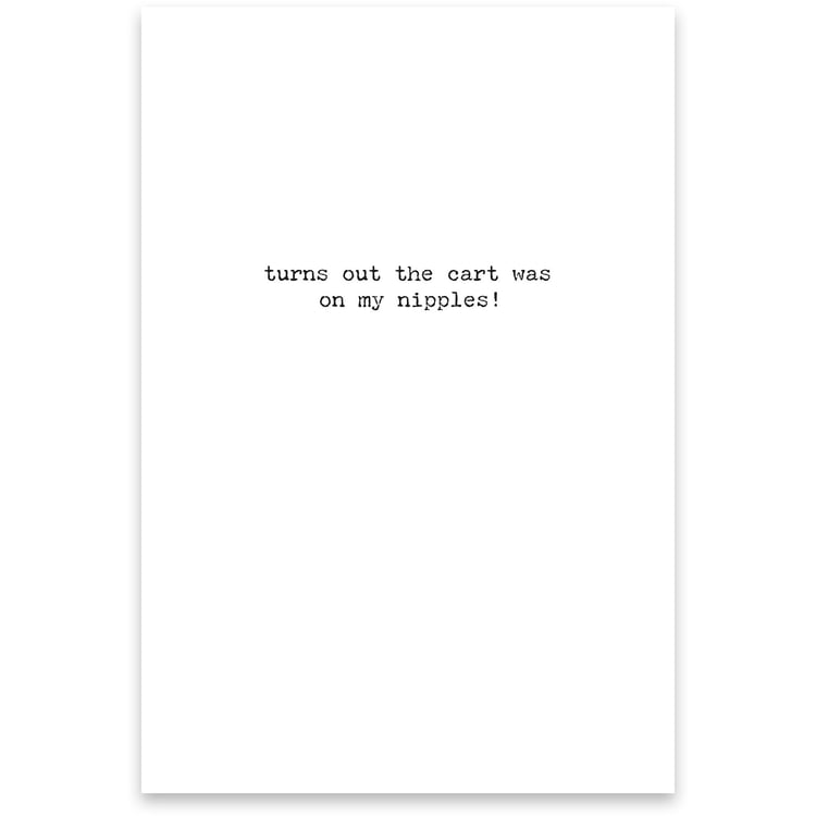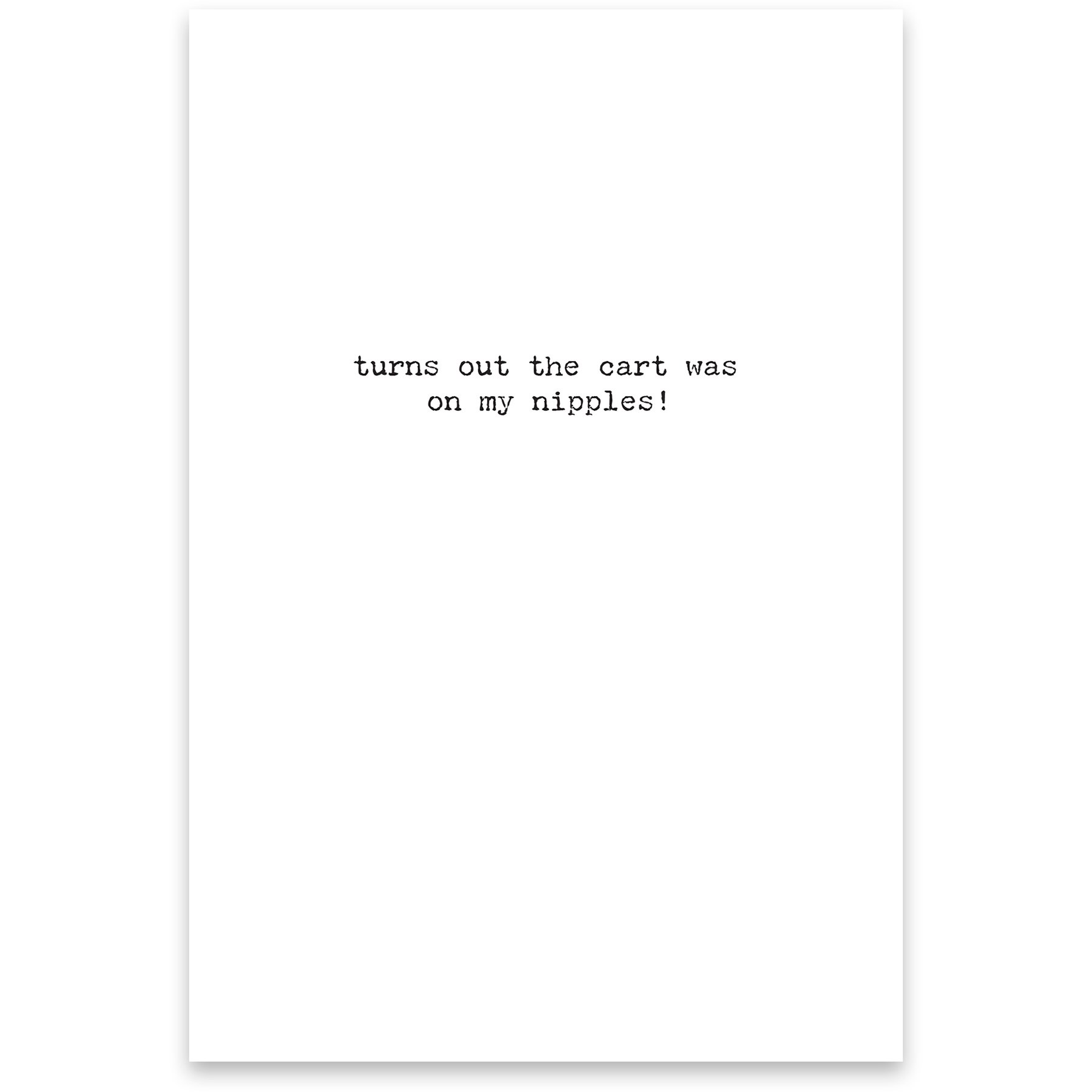 Made in the USA. Outside: I started having chest pains at the grocery store⦠Inside: turns out the cart was on my nipples!
