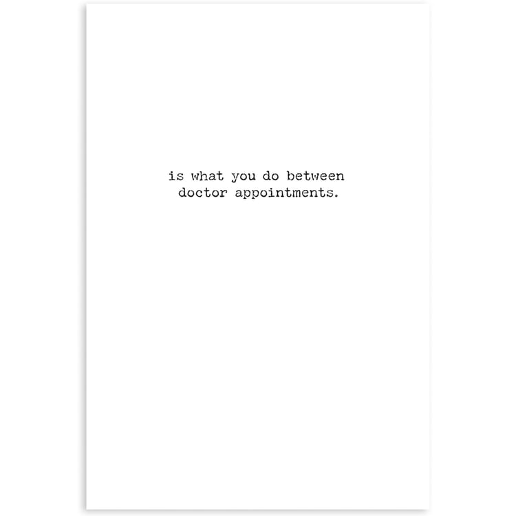 A greeting card from our Trash Talk By Annie Collection displaying a fun vintage black and white photograph complemented with a humorous retirement inspired sentiment. Greeting card features "Retirement..." sentiment on the outside and "Is What You Do Between Doctor Appointments." sentiment on the inside with space to add a personalized message. Our Doctor greeting card is a hilarious gifting option for everyday moments. Proudly made in the USA.
