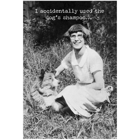 A greeting card from our Trash Talk By Annie Collection displaying a vintage black and white photograph complemented with a humorous sentiment. Greeting card features "I Accidentally Used The Dog's Shampoo..." sentiment on the outside and "Now I Feel Like Such A Good Girl." sentiment on the inside with space to add a personalized message. Our Dog Shampoo greeting card is a hilarious gifting option for everyday moments. Proudly made in the USA.