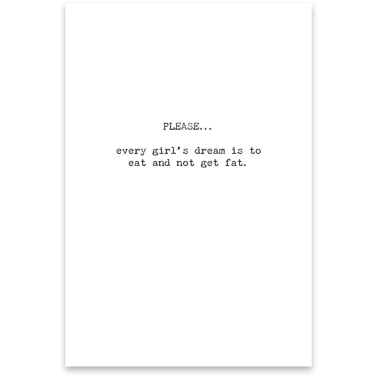 Made in the USA. Outside: Everyone thinks that a girl's dream is to find the perfect guy. Inside: PLEASE... every girl's dream is to eat and not get fat.