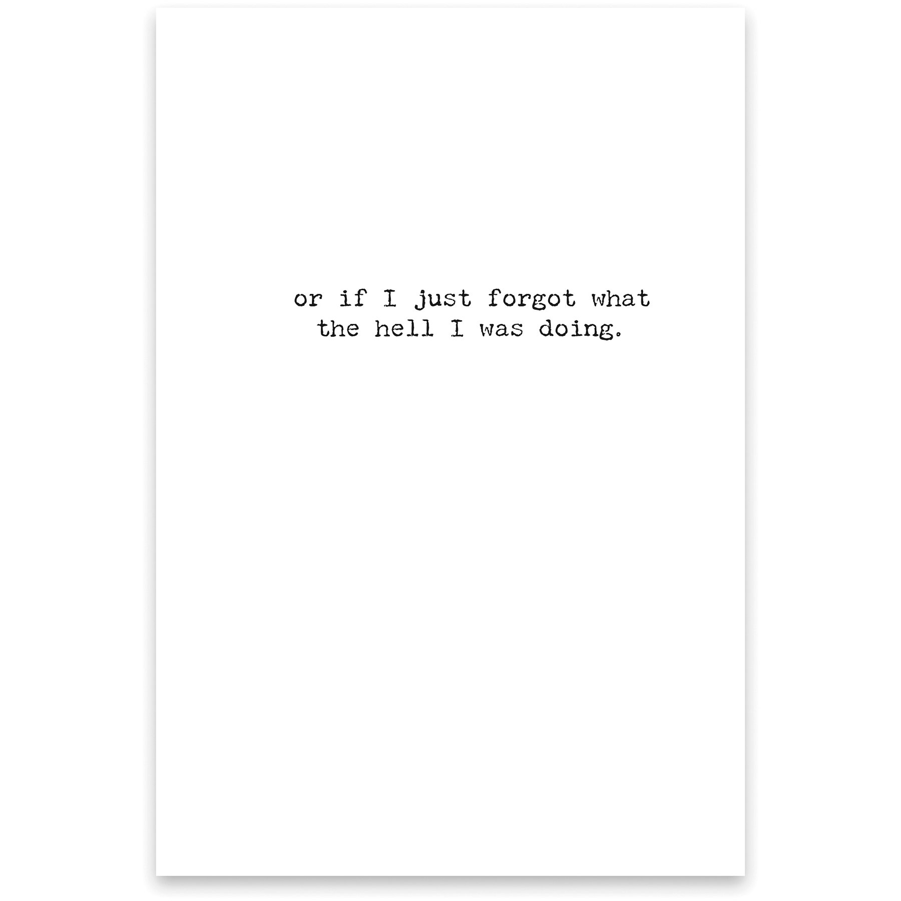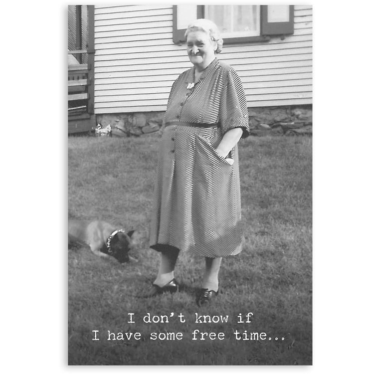 A humorous greeting card featuring vintage photography with outside "I Don't Know If I Have Some Free Time..." and inside "Or If I Just Forgot What The Hell I Was Doing." sentiments. Made in the USA.
