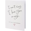 An elegant greeting card from our Greeting Card Collection displaying a loving sentiment and a digitally embossed heart design that creates a detailed texture you can feel. The front of the card features "I Can't Say I Love You Enough - So This Is Your Reminder" sentiment with a blank space inside to create a personalized message. Each card includes a brown kraft paper envelope for the perfect finishing touch. I Love You greeting card is proudly made in the USA.