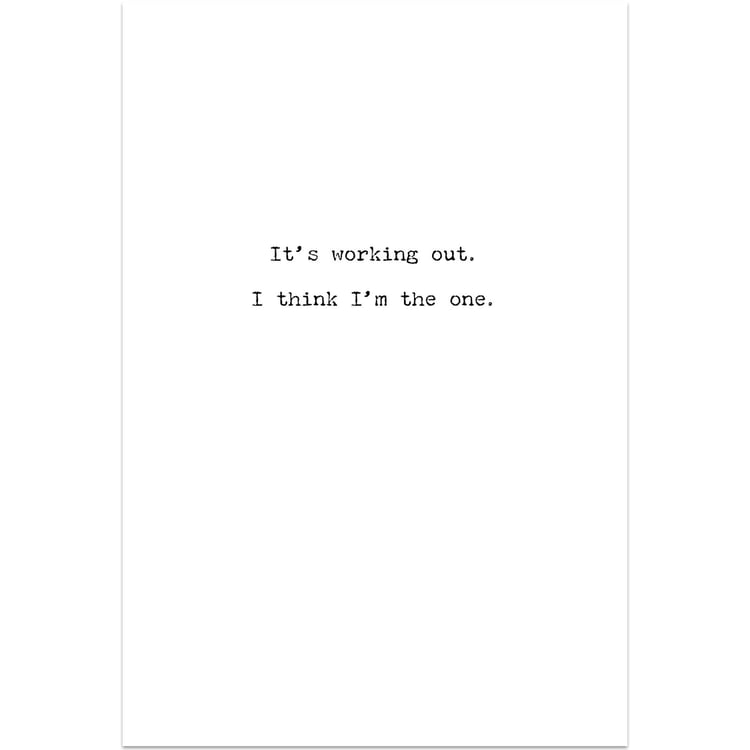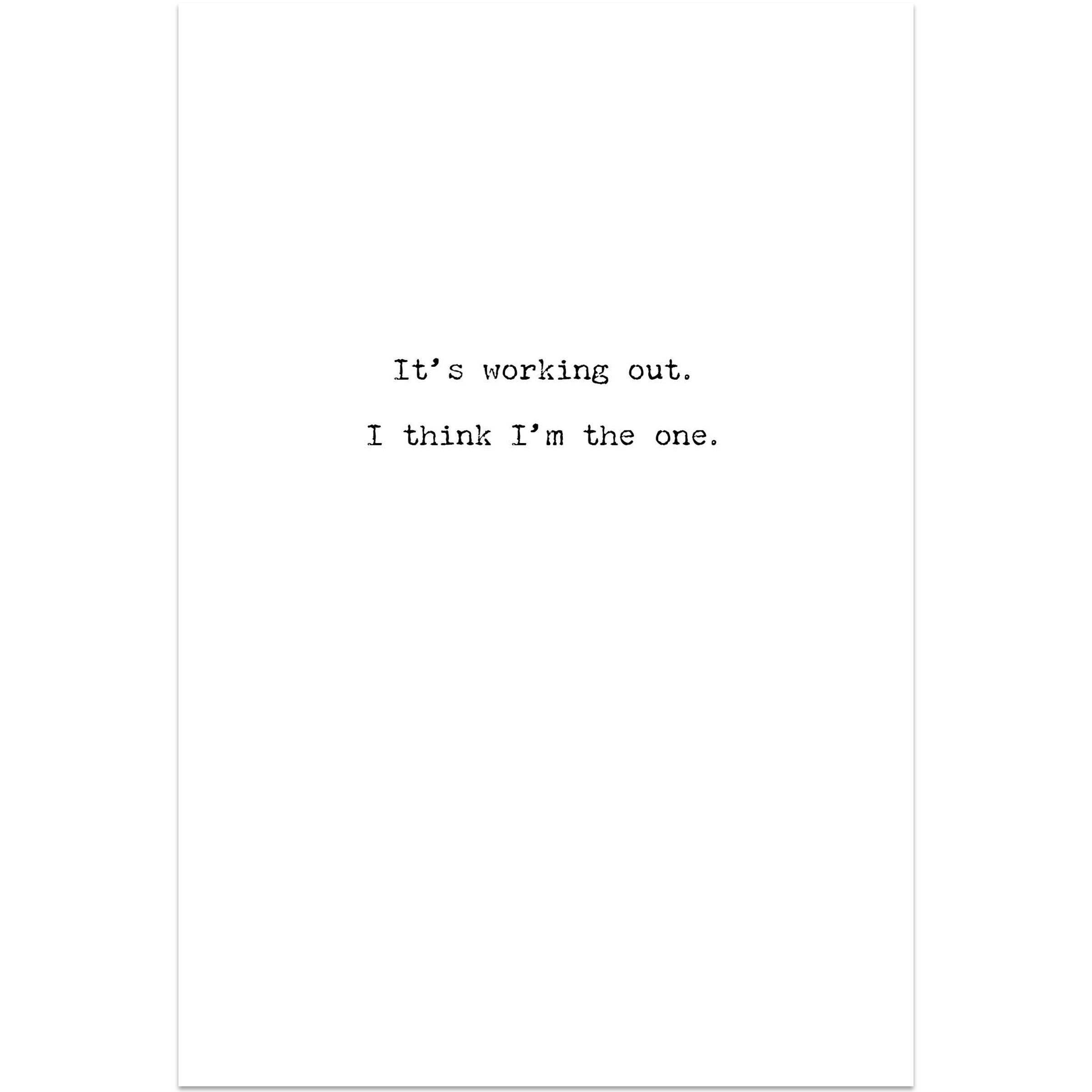 A humorous greeting card from our Trash Talk By Annie Collection displaying a vintage photograph with complementing sentiment. Card features "I've Been Single For A While, And I Have To Say, It's Going Very Well." sentiment on the outside and "It's Working Out. I Think I'm The One." sentiment on the inside with space to add a personalized message. Our I'm The One greeting card is a hilarious gifting option for everyday moments. Proudly made in the USA.