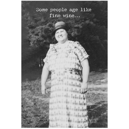 A humorous greeting card from our Trash Talk By Annie Collection displaying a vintage photograph with complementing sentiment. Card features "Some People Age Like Fine Wine…" sentiment on the outside and "I'm Aging Like Milk. Sour And Chunky." sentiment on the inside with space to add a personalized message. Our Sour & Chunky greeting card is a hilarious gifting option for everyday moments. Proudly made in the USA.