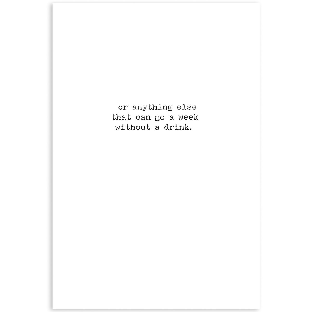A greeting card from our Trash Talk By Annie Collection displaying a vintage black and white photograph complemented with a humorous alcohol-themed sentiment. Greeting card features "I Don't Trust Camels..." sentiment on the outside and "Or Anything Else That Can Go A Week Without A Drink." sentiment on the inside with space to add a personalized message. Our Trust Camels greeting card is a hilarious gifting option for everyday moments. Proudly made in the USA.