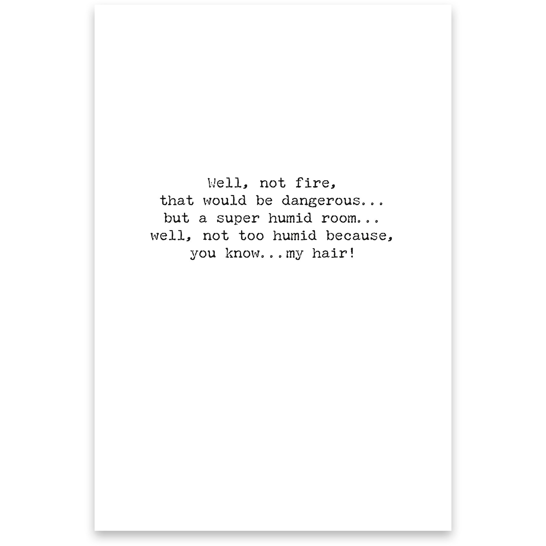 Made in the USA. Outside: I'd walk through fire for you! Inside: Well, not fire, that would be dangerous…but a super humid room…well, not too humid because, you know…my hair!