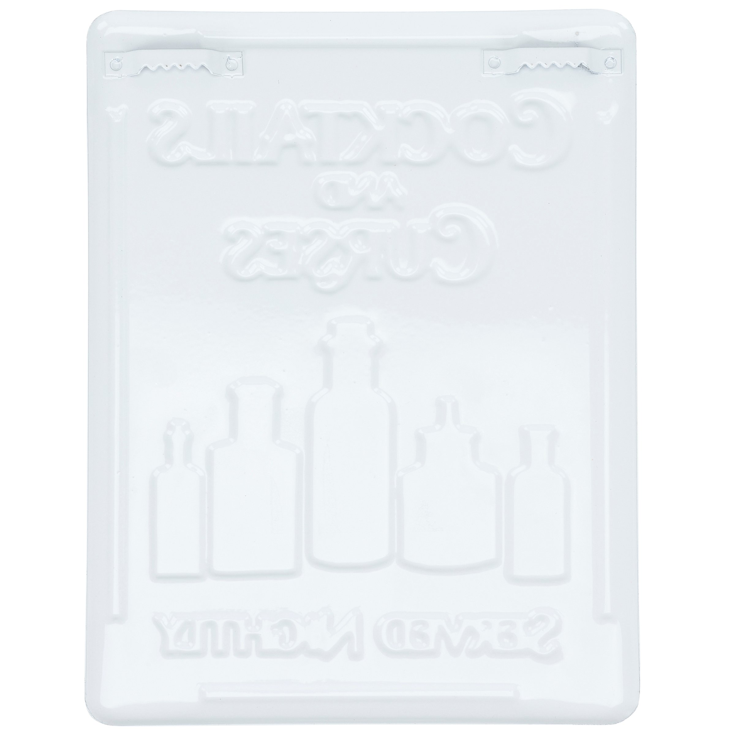A metal wall décor piece from our Halloween Collection featuring a fun witch inspired design displaying rustic art of potion bottles with a sentiment that reads "Cocktails And Curses - Served Nightly." Rustic witch sign features embossed and debossed details for added dimension. Our Cocktails And Curses hanging décor is ready to hang via the attached sawtooth hangers on the back. A rustic Halloween home accent perfect for seasonal displays or for everyday witch themed decor.