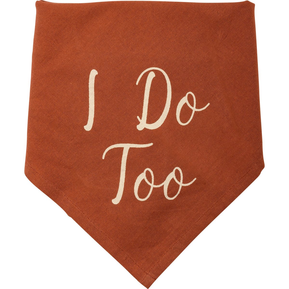 A large reversible pet bandana from our Pet Collection featuring handlettered "I Do Too" sentiment. 21" x 21". Our large I Do Too pet bandana is machine-washable.