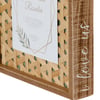 A wooden inset box frame featuring a rattan background and natural wood sides with "I Love Us" sentiment. Includes one bulldog clip to easily display a 5" x 7" photo. Our I Love Us inset box frame is easy to hang or can free-stand alone.
