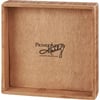 An inset box sign from our Box Sign Style Collection featuring a natural wood frame and inset design of a box sign style sentiment with dry brushed cream color background. Design displays humorous sentiment that reads "I'm So Tired Of Babysitting My Mom's Grandkids." Our My Mom's Grandkids inset box sign is easy to hang or can free-stand alone. A fun everyday home accent with a variety of display options.
