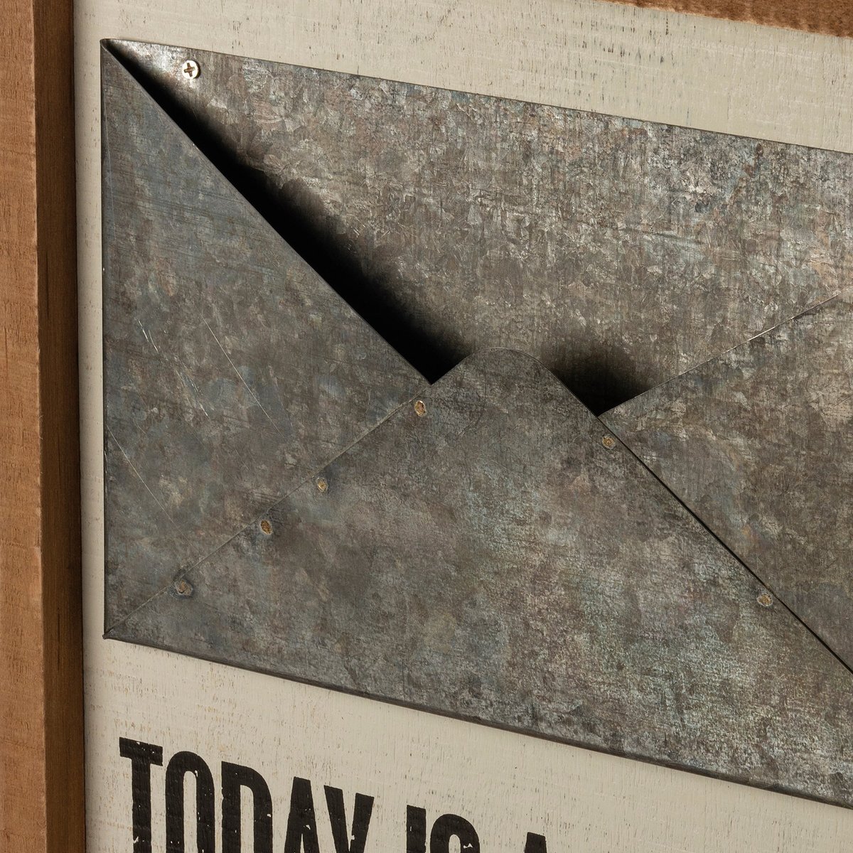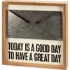 A wooden inset box sign featuring "Today Is A Good Day To Have A Great Day" sentiment and a galvanized metal letter holder. Easy to hang or can free-stand alone.