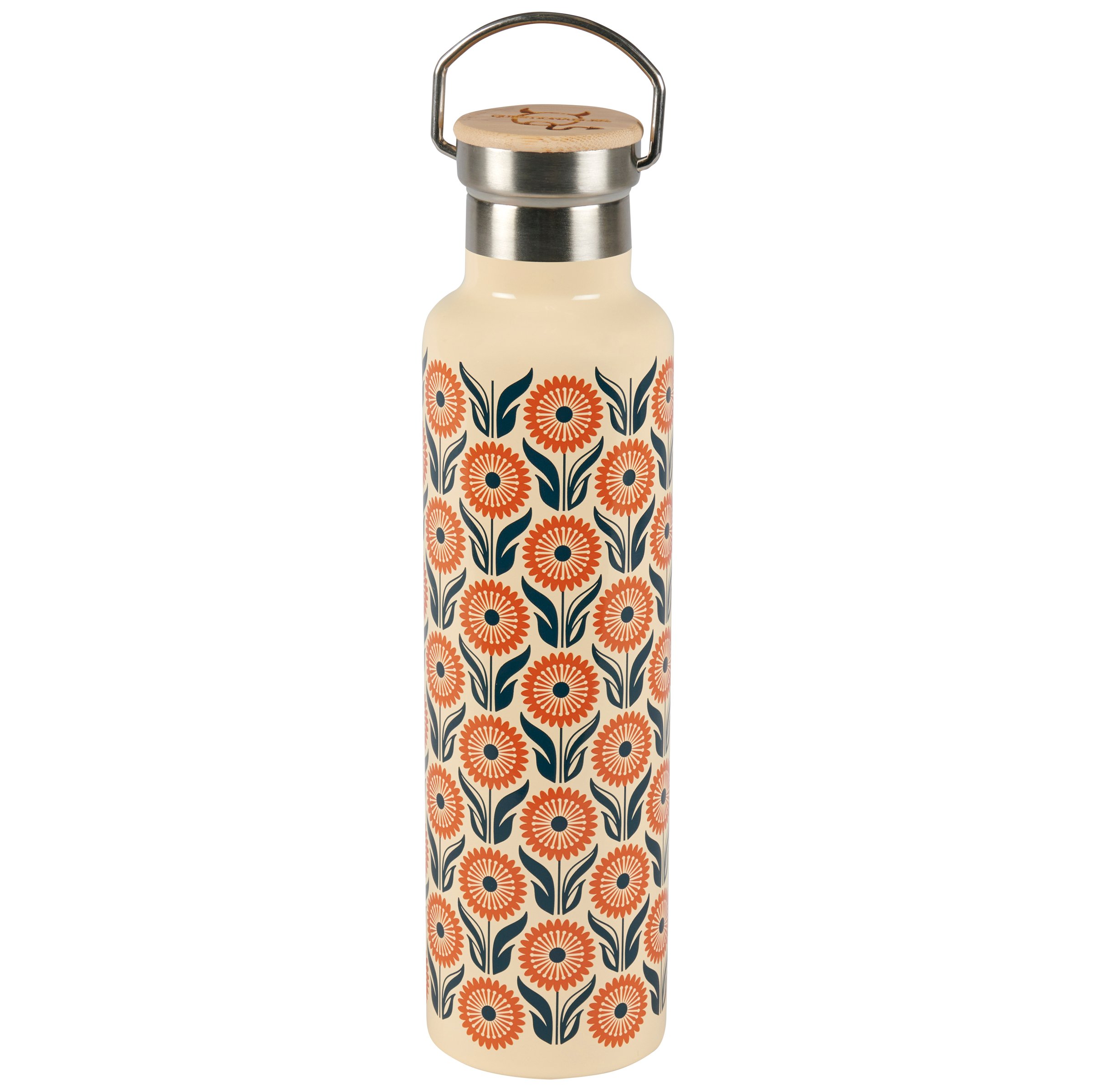 This insulated stainless steel water bottle displays a full wrap-around design of eye-catching florals in a bold color palette for a stylish everyday accessory. Questionables insulated bottles keep up to 25 oz beverages cold for 24 hours and hot for 12 hours and includes a coordinating lid with bamboo top. BPA free bottle is hand wash only; do not microwave. Our Hipster Daisies insulated bottle is an everyday accessory that demands the attention of others and is perfect for staying hydrated on-the-go or at home.