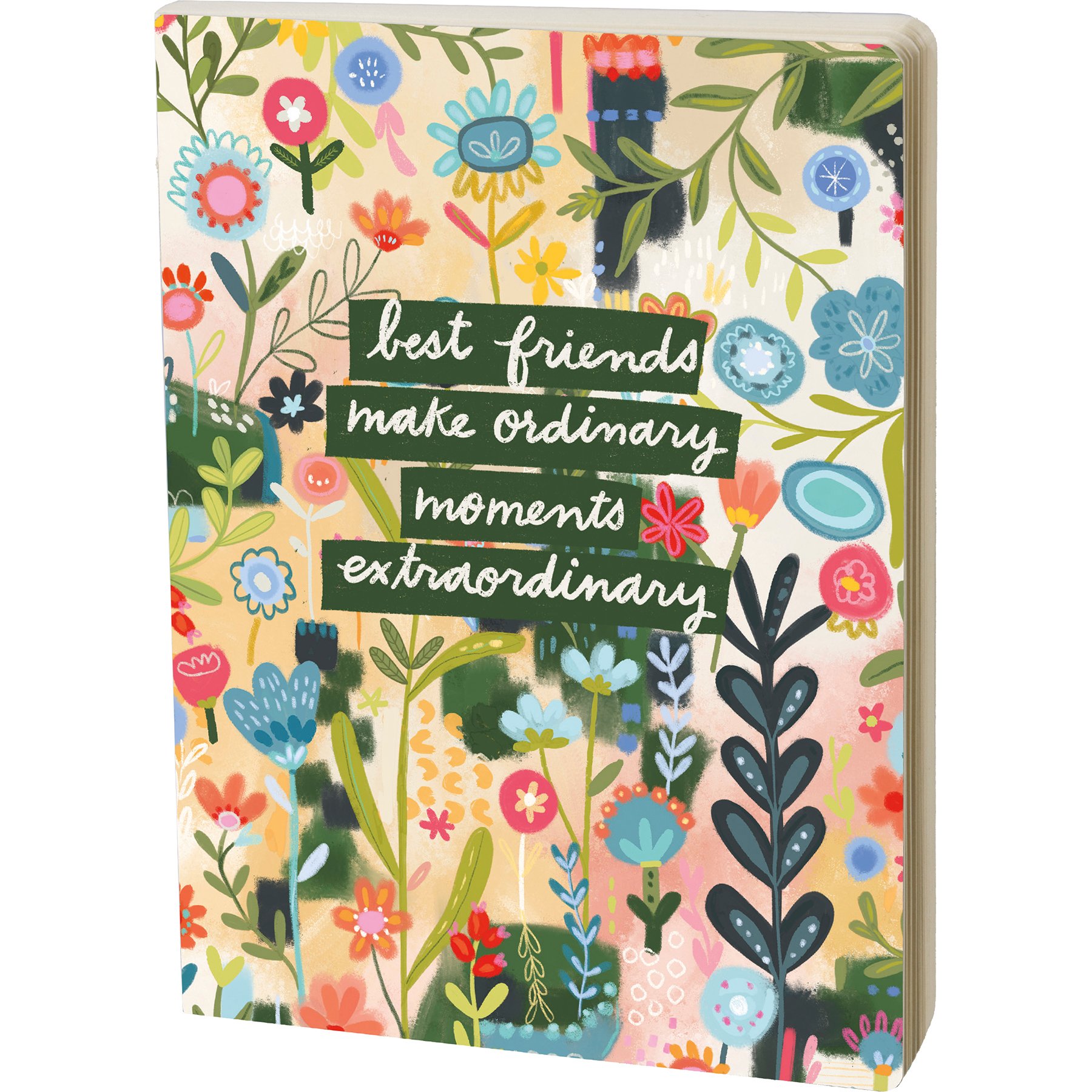 A double-sided journal featuring floral designs and "Best Friends Make Ordinary Moments Extraordinary" sentiment. Journal features an exposed seam enabling it to lay flat. Includes 160 lined pages.