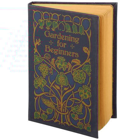 A high-quality decorative journal from our Garden Collection featuring a vintage book inspired design. Vintage book design features a textured canvas wrap with distressed details displaying floral designs and a garden themed book title sentiment that reads "Gardening For Beginners." Journal spine also displays a coordinating design with book title sentiment to give the appearance of a book when on a shelf. Our Gardening journal includes 170 lined pages on vintage style paper to complete the aged appearance. A vintage garden-themed gift perfect for any home office or desk.