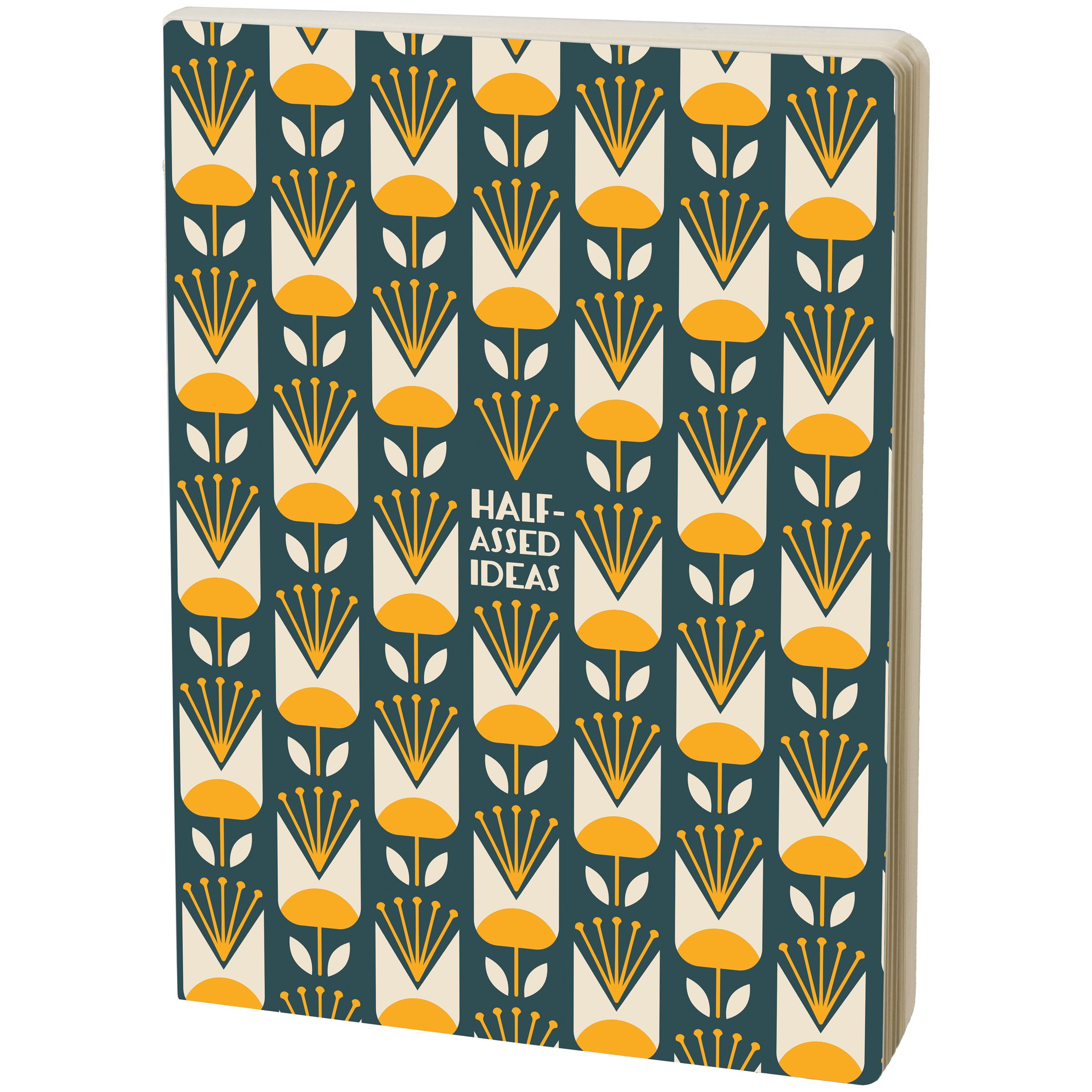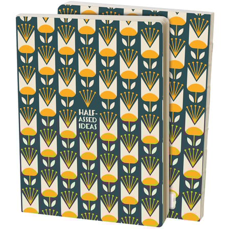 This sarcastic journal displays "Half-Assed Ideas" with a stylish floral pattern in a bold color palette perfect for writing those thoughts we always mean to go back to, but never do. Questionables journals include 160 lined pages and an open spine to lay flat for easy use when writing. Our Ideas journal calls demands the attention of others for a statement making accessory perfect for everyday use.