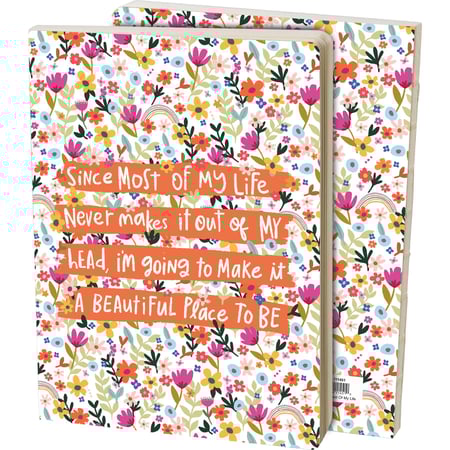 A double-sided journal featuring floral designs and "Since Most Of My Life Never Makes It Out Of My Head, I'm Going To Make It A Beautiful Place To Be" sentiment. Journal features an exposed seam enabling it to lay flat. Includes 160 lined pages.