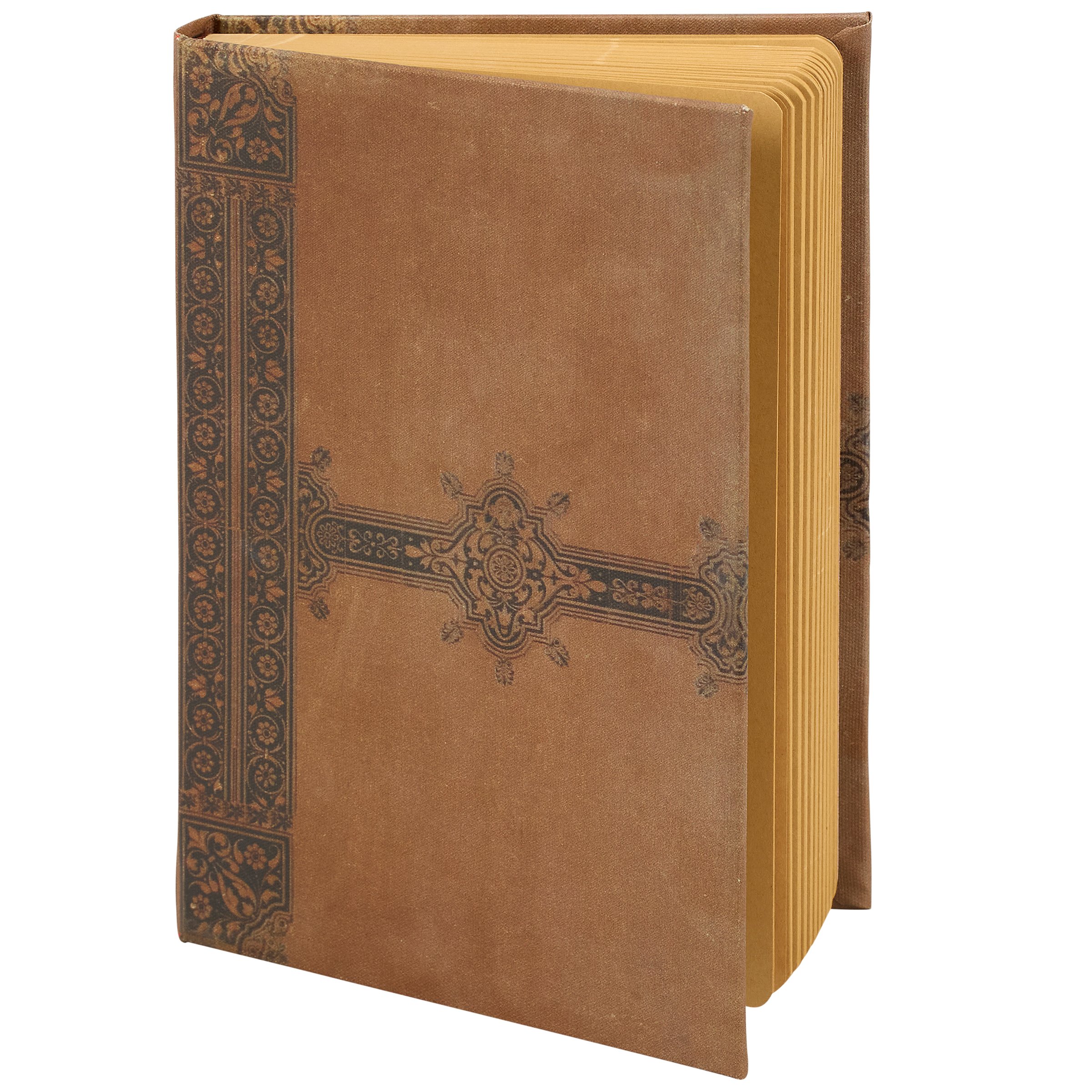 A high-quality jdecorative ournal from ourĀ Dark Academia Collection displaying a vintage book inspired design. Vintage book design features a textured canvas wrap with distressed details displaying a vintage emblem design on the covers. Journal spine also displays a coordinating design to give the appearance of a book when on a shelf. Our Vintage Emblem journal includes 170 lined pages on vintage style paper to complete the aged appearance. A vintage book-themed gift perfect for any home office or desk.