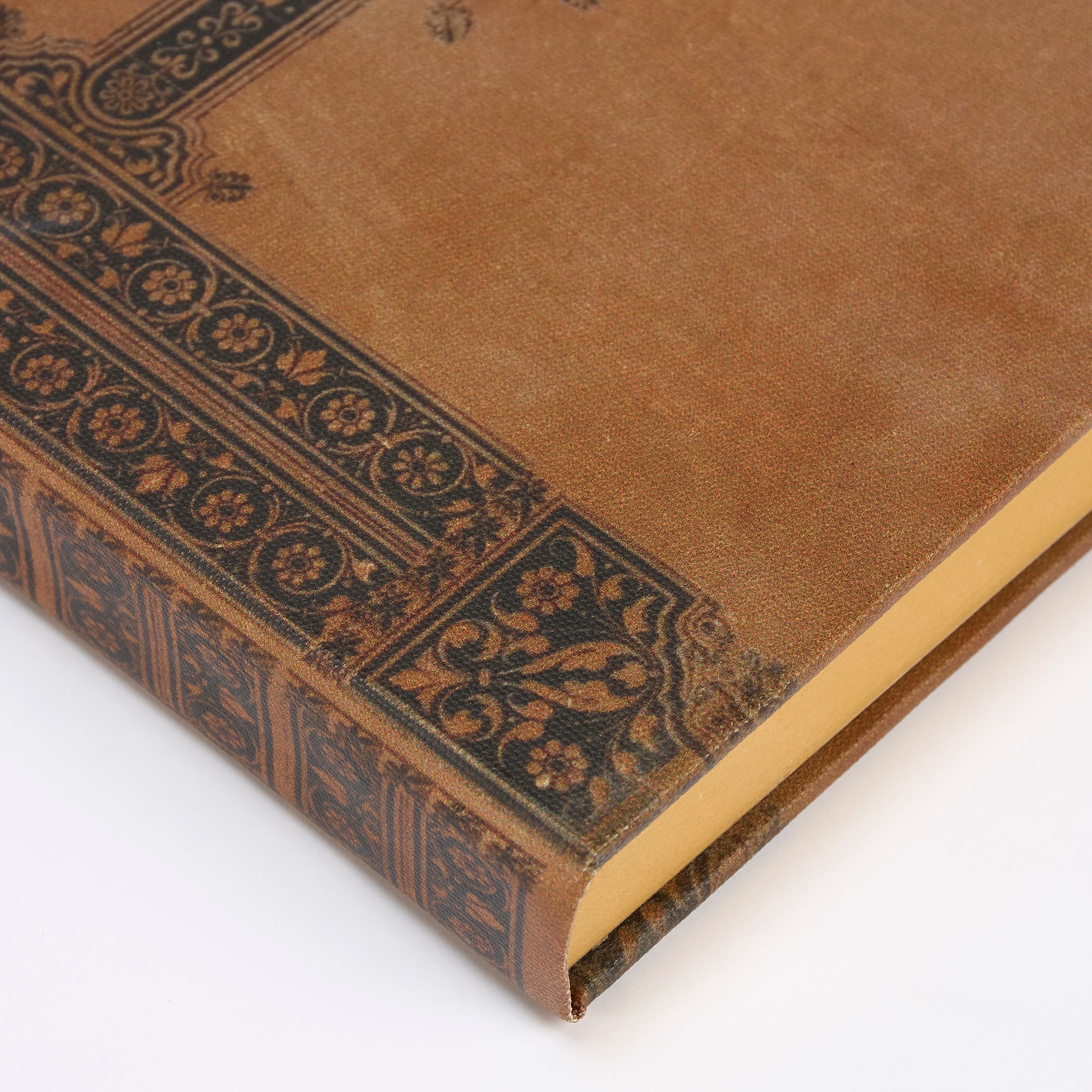 A high-quality jdecorative ournal from ourĀ Dark Academia Collection displaying a vintage book inspired design. Vintage book design features a textured canvas wrap with distressed details displaying a vintage emblem design on the covers. Journal spine also displays a coordinating design to give the appearance of a book when on a shelf. Our Vintage Emblem journal includes 170 lined pages on vintage style paper to complete the aged appearance. A vintage book-themed gift perfect for any home office or desk.