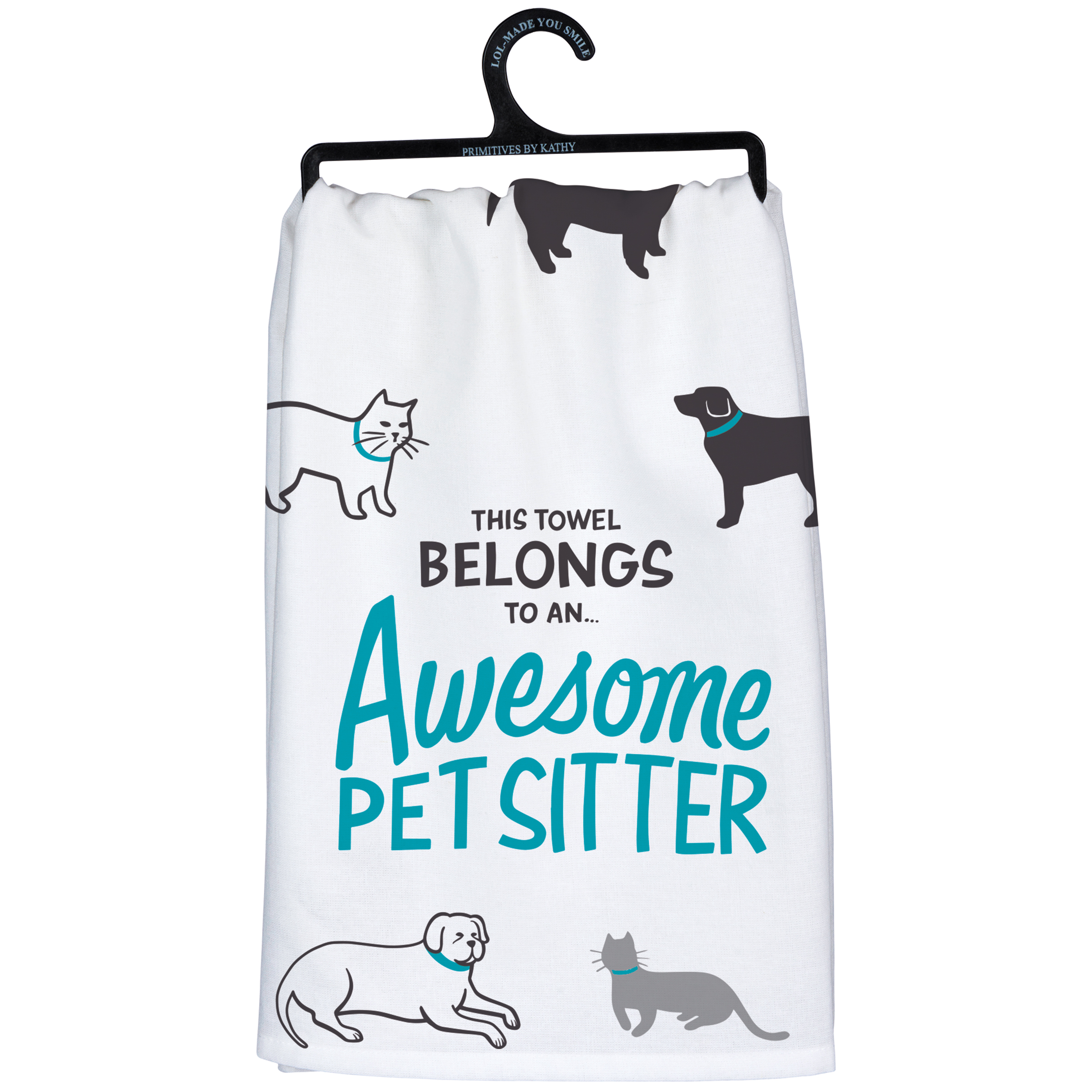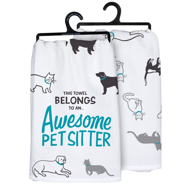 A cotton kitchen towel from our best-selling LOL Made You Smile Collection featuring a "This Towel Belongs To An… Awesome Pet Sitter" sentiment with all-over cat and dog designs. Our Awesome Pet Sitter kitchen towel is machine-washable.
