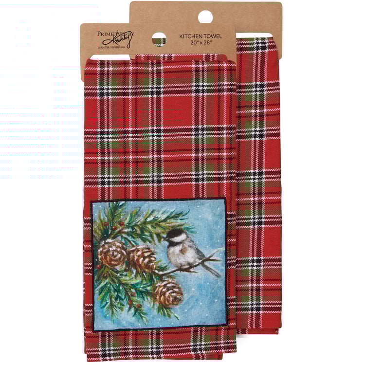 Plaid Chickadee Kitchen Towel