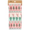 A microfiber kitchen towel from our Christmas Collection displaying an all-over design of rows Christmas motif patterns in a retro pastel color palette including Christmas trees, reindeer, ornaments, and more. Our Christmas Retro kitchen towel is conveniently machine-washable for easy cleaning. Seasonal kitchen towel is packaged on a cardboard hanger with hole to easily display on rack. A retro pastel Christmas kitchen accessory perfect for seasonal use.