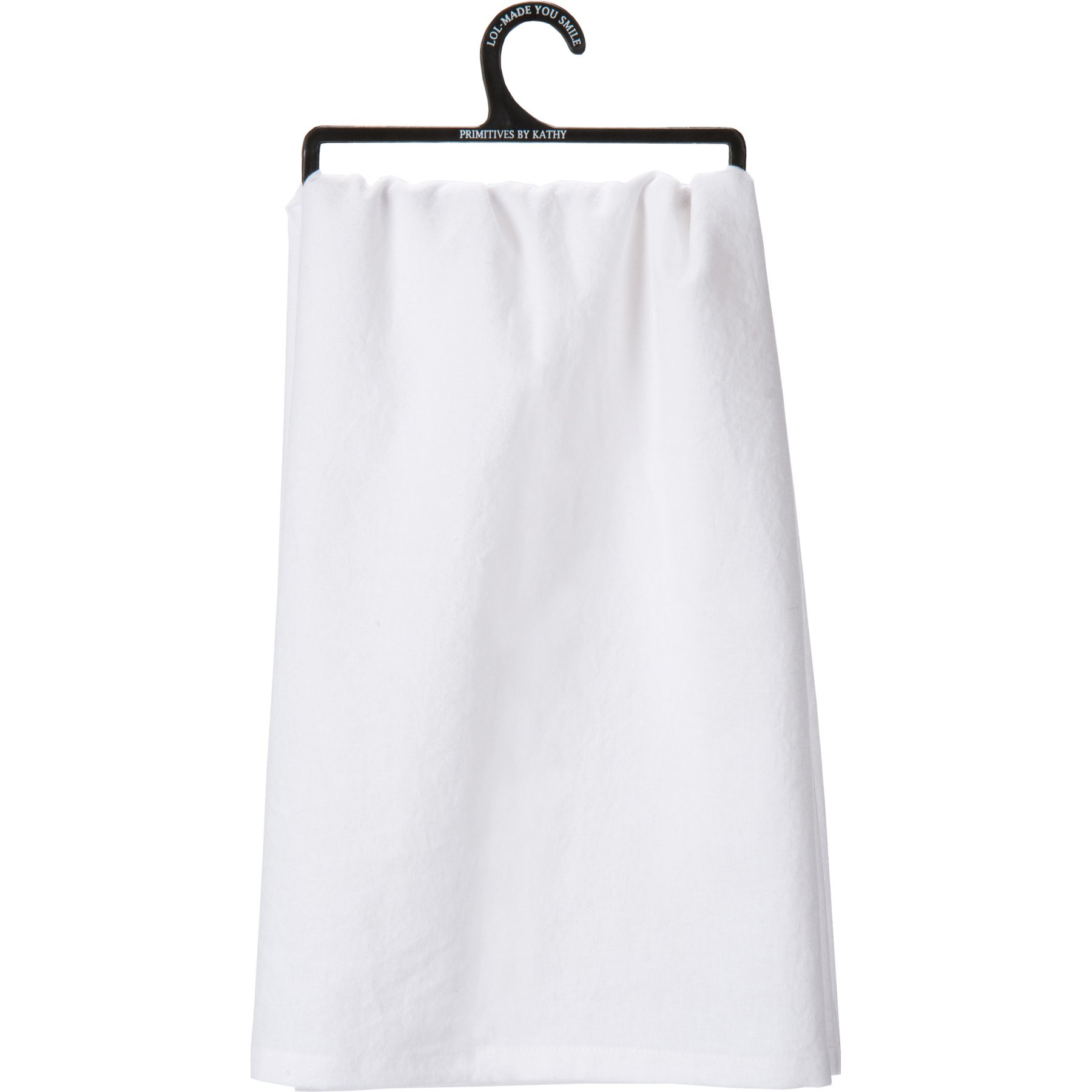 A black and white cotton kitchen towel from our Halloween Collection displaying a unique hand illustrated design of a hockey mask and bag of candy. Design also includes orange accents and sentiment that reads "I Just Want To Eat Halloween Candy And Watch Horror Movies." Our Eat Candy Watch Movies kitchen towel is machine-washable for convenient cleaning. Packaged on a black plastic hanger to easily display on rack. A fun and functional seasonal kitchen accent.