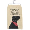 A rustic-inspired cotton kitchen towel lending a distressed "Every Meal You Make - Every Bite You Take - I'll Be Watching You" sentiment with a dog and bandana design. Complements well with coordinating design pieces. Machine-washable.