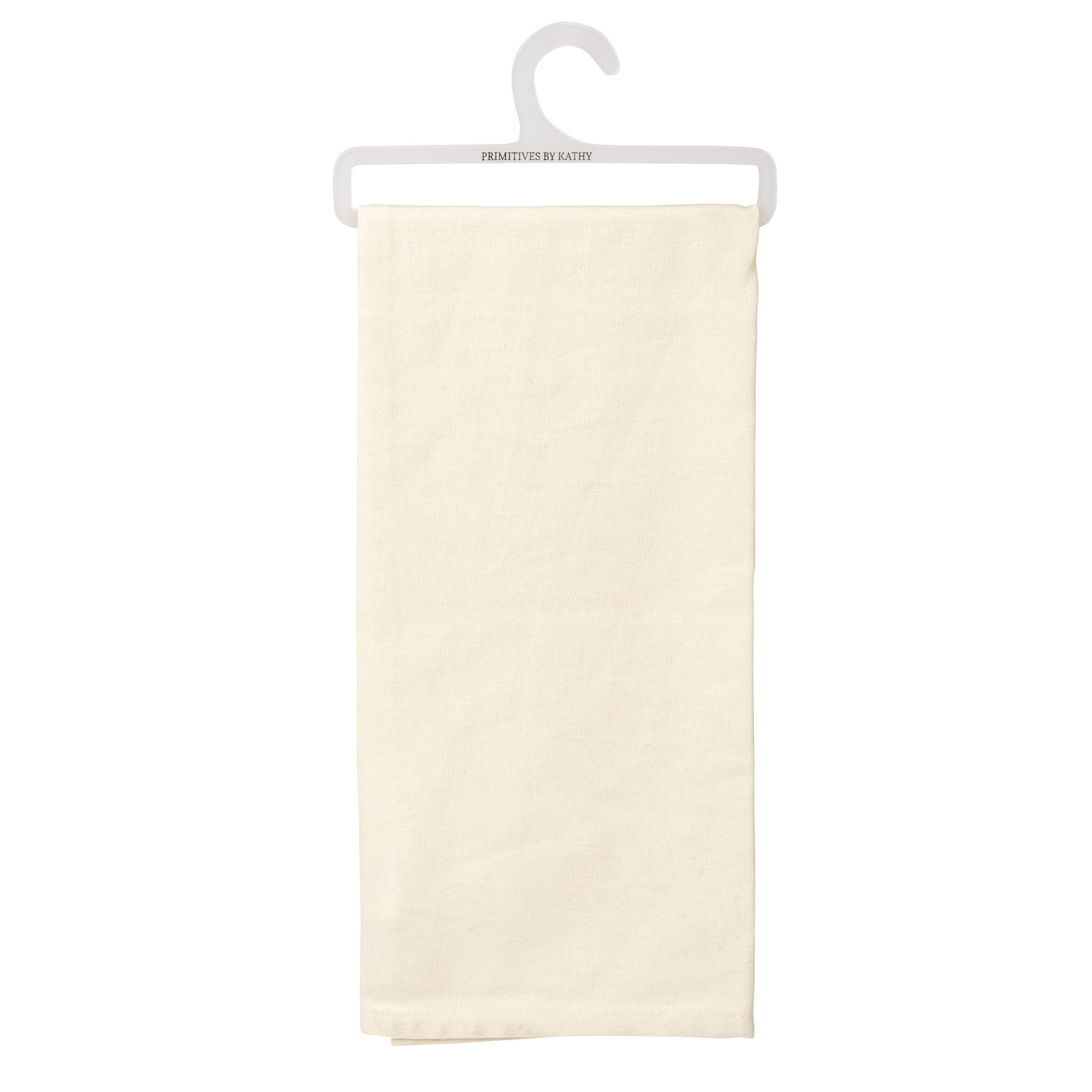 A cotton kitchen towel for fall featuring a distressed "Jingle All The Way - Nobody Likes A Half-Assed Jingler" sentiment, screen printed donkey design, and stitched details. Machine-washable.