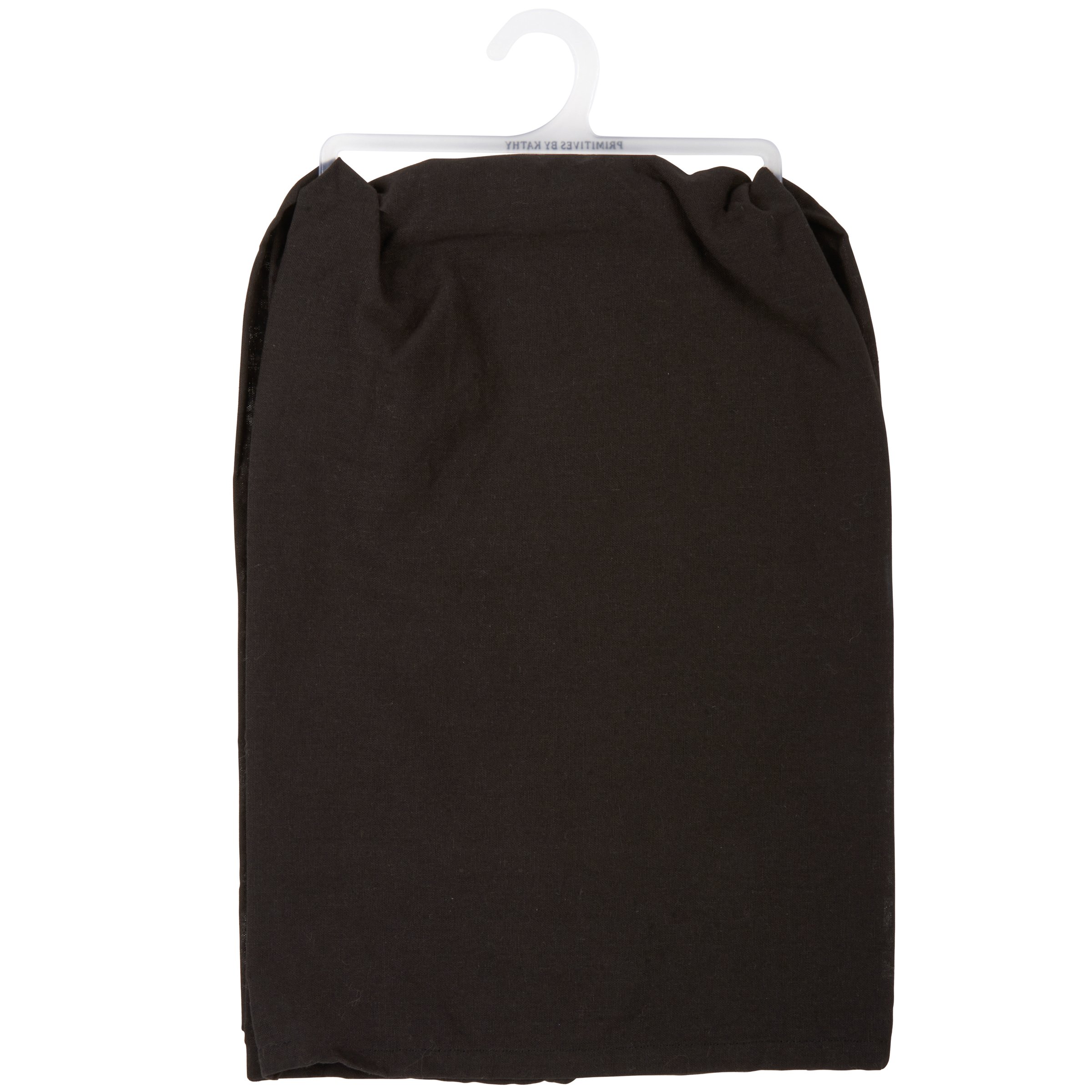 A black cotton kitchen towel from our Grilling & Chilling Collection displaying a humorous "Love Is In The Air. Oh Wait, That's BBQ." sentiment with distressed details. Our Love Is In The Air kitchen towel is machine-washable for convenient cleaning. Packaged on a plastic hanger with hook to easily hang on rack.