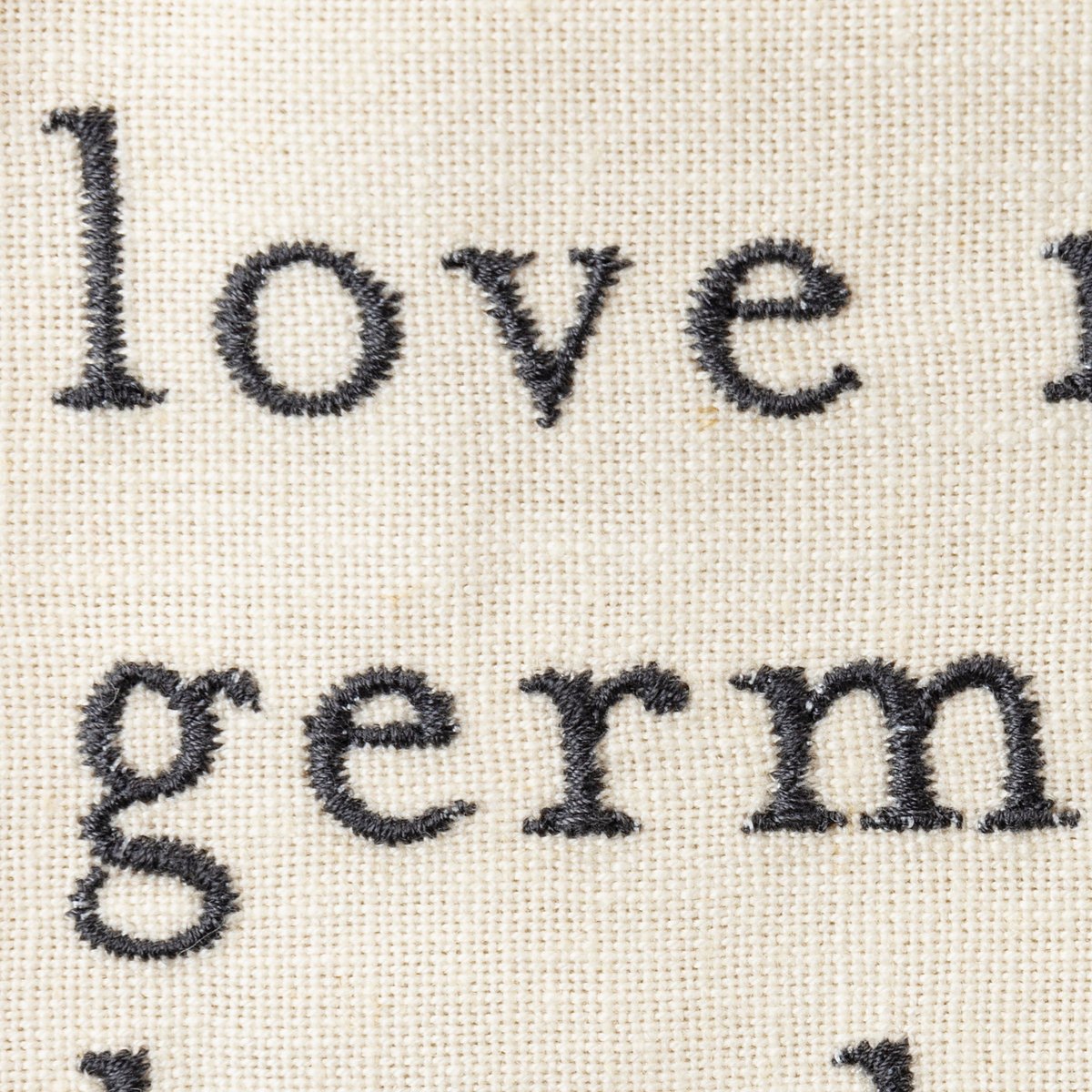 A cotton-linen blend kitchen towel from our Pet Collection displaying a beautifully embroidered design of a german shepherd and coordinating sentiment that reads "Love My German Shepherd." Our Love My German Shepherd kitchen towel is conveniently machine-washable for easy cleaning. German shepherd kitchen towel is packaged on a clear plastic hanger to easily display on rack. A lovely pet-themed kitchen accessory perfect for everyday use.
