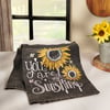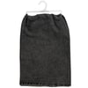 A stonewashed black cotton kitchen towel from our Chalk Art Collection displaying a hand illustrated design of sunflowers and bees in a chalk art style with love-themed sentiment that reads "You Are My Sunshine." Our You Are My Sunshine kitchen towel is conveniently machine-washable for easy cleaning. Packaged on a clear plastic hanger to easily display on rack. A love-themed kitchen accessory great for gifting.