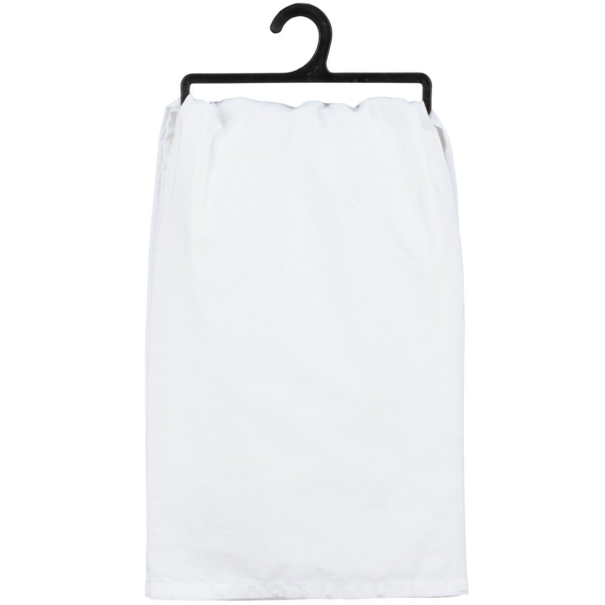 A cotton kitchen towel lending "It's Not Dog Hair It's Rescue Glitter" sentiment, dog and floating fur designs, and rich-pigmented glitter accents. Great for gifting for make for special kitchen décor. Machine-washable; glitter will not transfer.