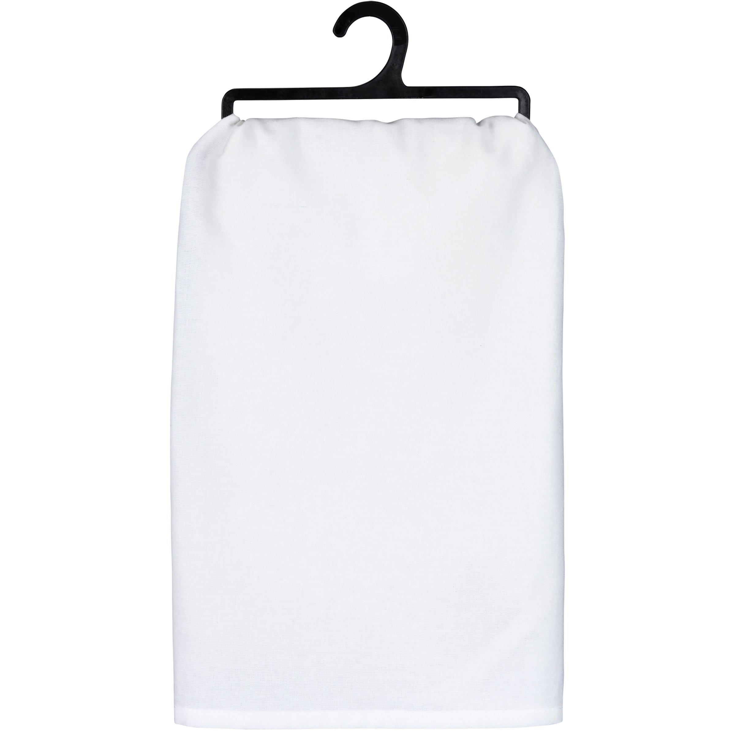 A black and white cotton kitchen towel from our Foodie Collection displaying a unique hand illustrated design of pizza slices and toppings in a thought bubble above a fun food-themed sentiment that reads "Pizza Is Always A Good Idea." Our Pizza A Good Idea kitchen towel is machine-washable for convenient cleaning. Packaged on a black plastic hanger to easily display on rack. A fun food-themed kitchen accent perfect for everyday use.