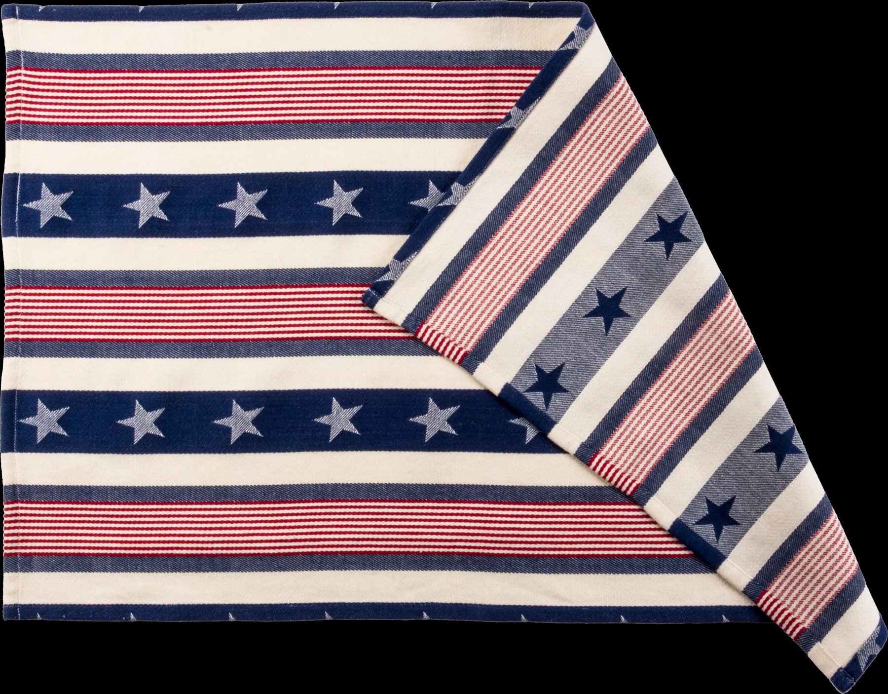 A patriotic-inspired double-sided kitchen towel from our Patriotic Collection featuring 100% cotton jacquard woven thread and stars and stripes design. This Stars and Stripes kitchen towel is machine-washable.
