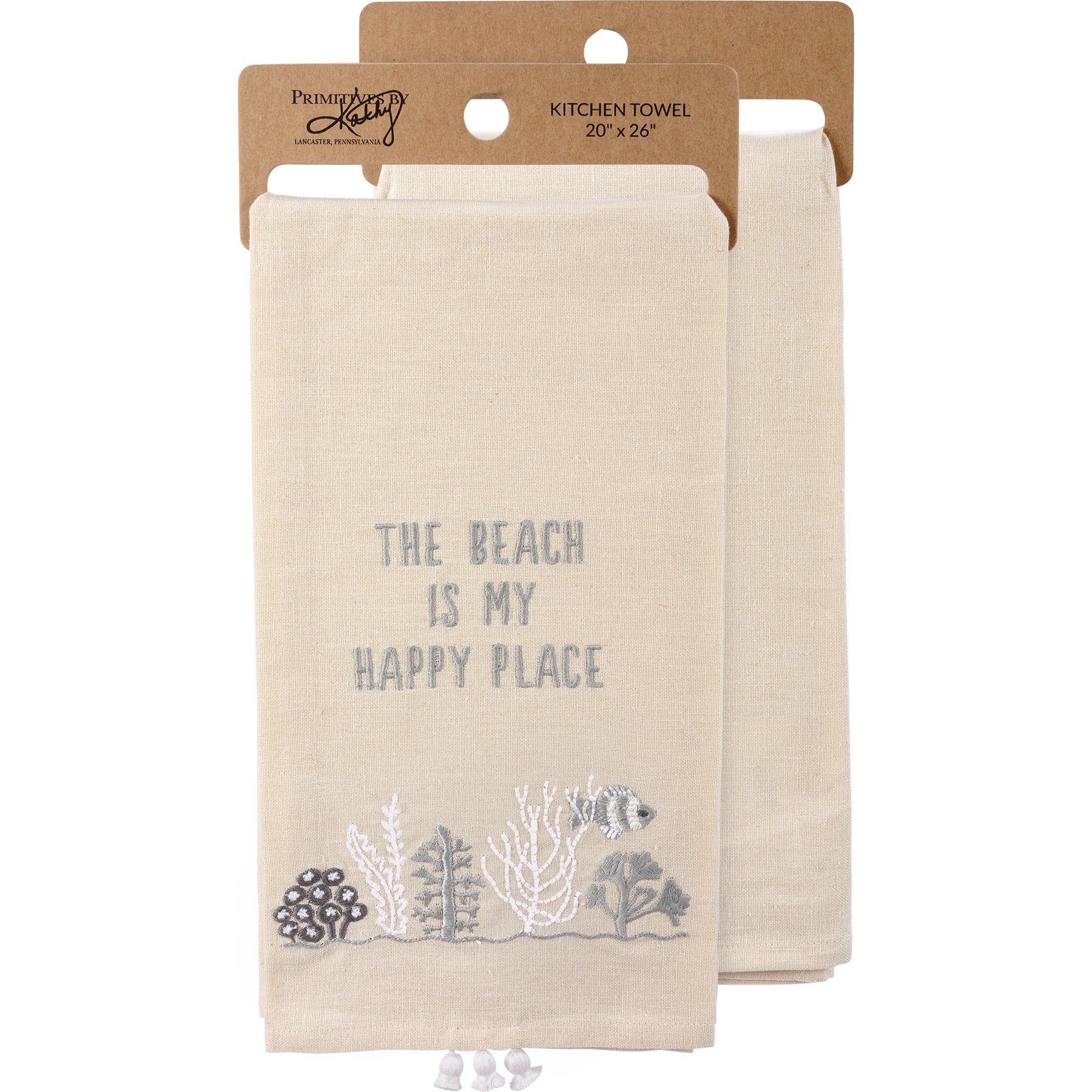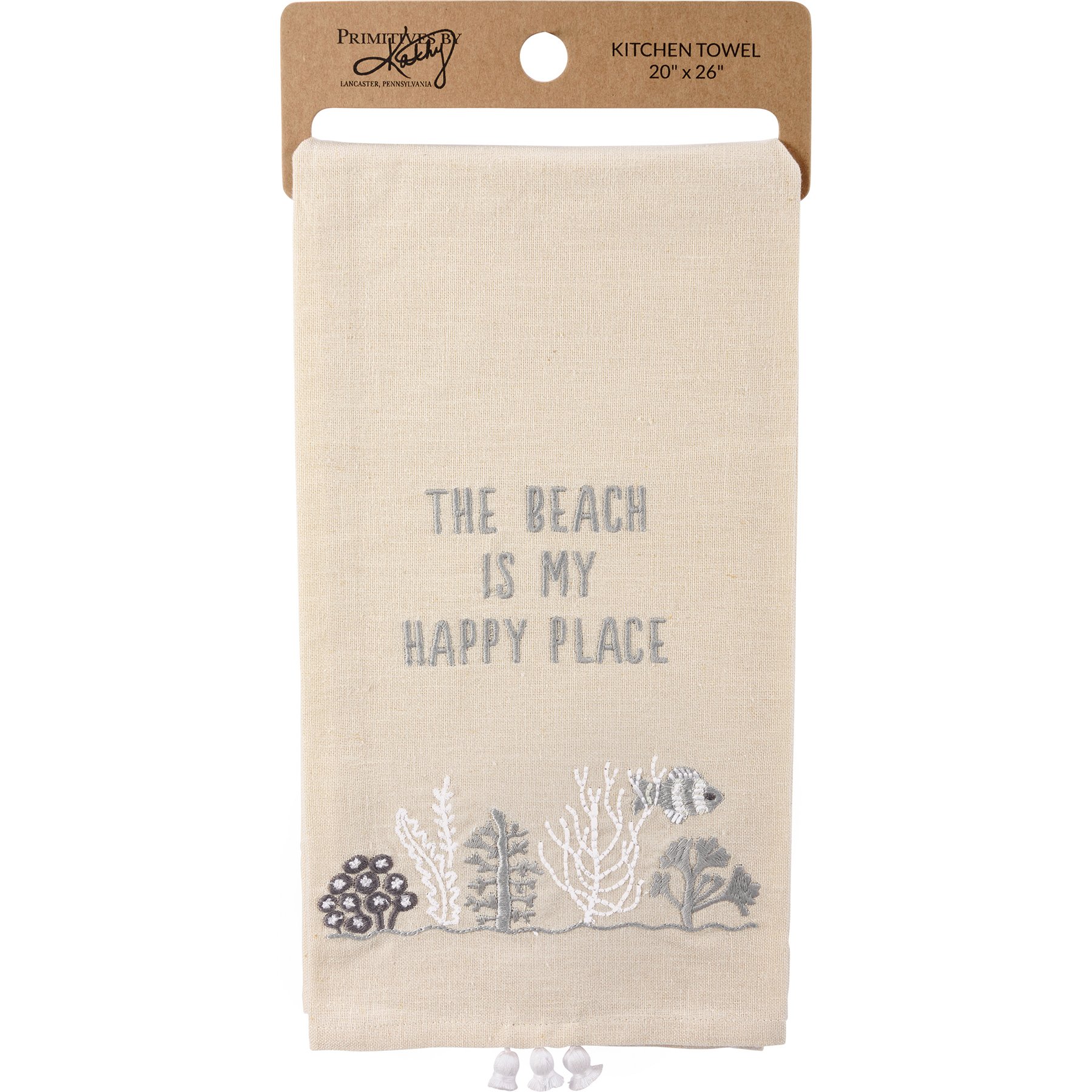 Beach Is My Happy Place Embroidered Kitchen Towel