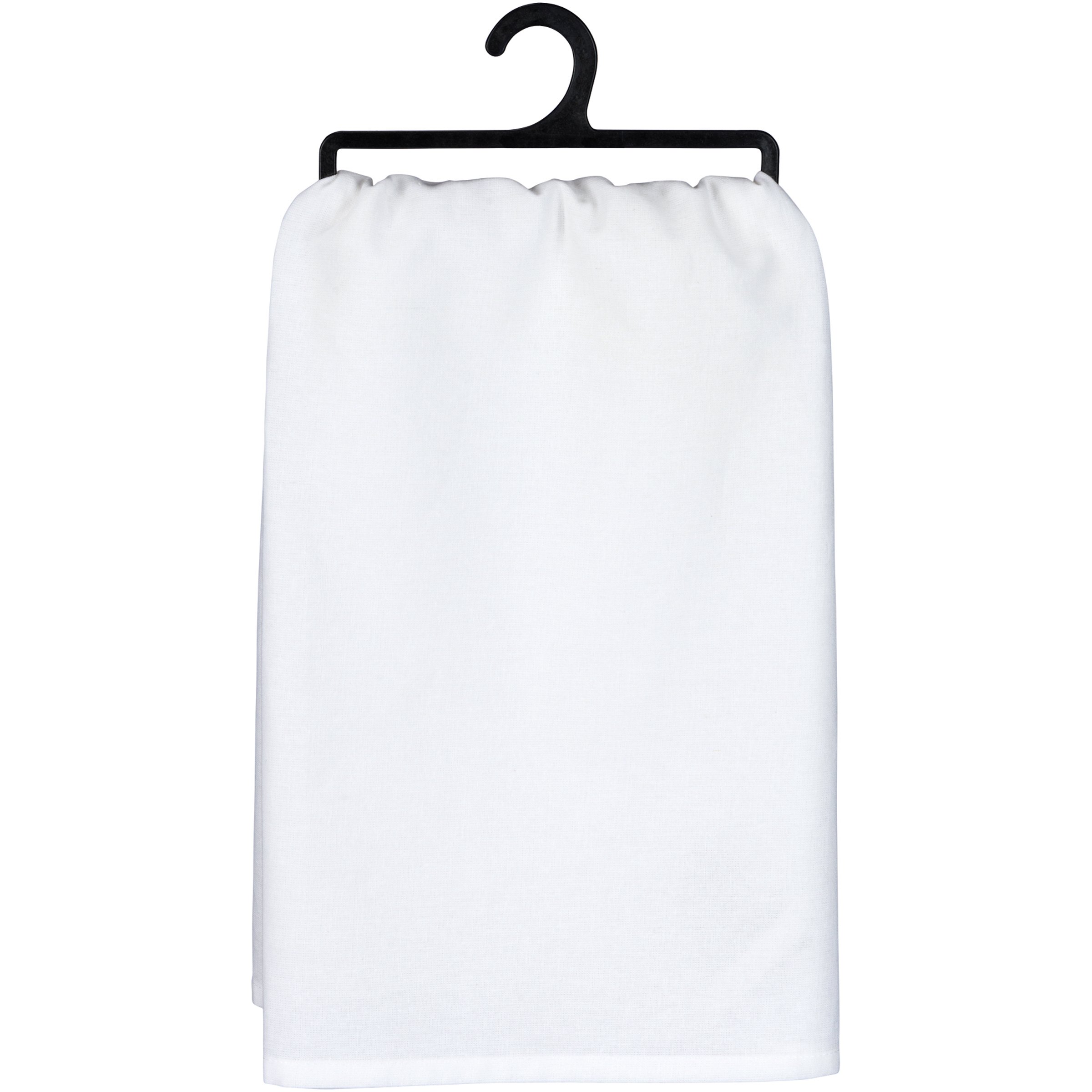 A black and white cotton kitchen towel from our LOL-Made You Smile Collection displaying a fun hand illustrated design of two martinis with a sentiment that reads "Friends Are Therapists You Can Drink With." Our Therapists kitchen towel is conveniently machine-washable for easy cleaning. Packaged on a black plastic hanger to easily display on rack. A fun kitchen accessory perfect for everyday use.
