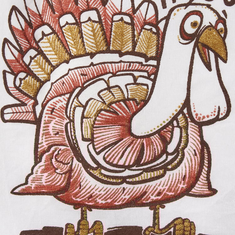 A white cotton kitchen towel from our Fall & Harvest Collection displaying a unique hand illustrated design with glitter accents of shocked turkey with humorous sentiment that reads "They Do What? ...Stuff What Into Where? Oh Hell No... I'm Out!" Design features autumn color palette and glitter accents. Our They Do What? Stuff What kitchen towel is machine-washable for convenient cleaning. Packaged on a black plastic hanger to easily display on rack. A fun and functional seasonal kitchen accent.
