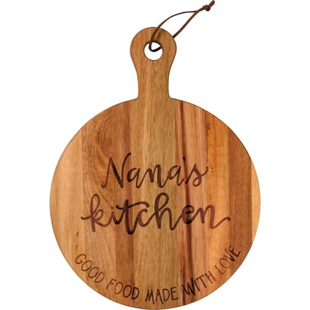 A wooden Lazy Susan featuring "Family And Friends Gather Here" sentiment. Hand-wash only.
