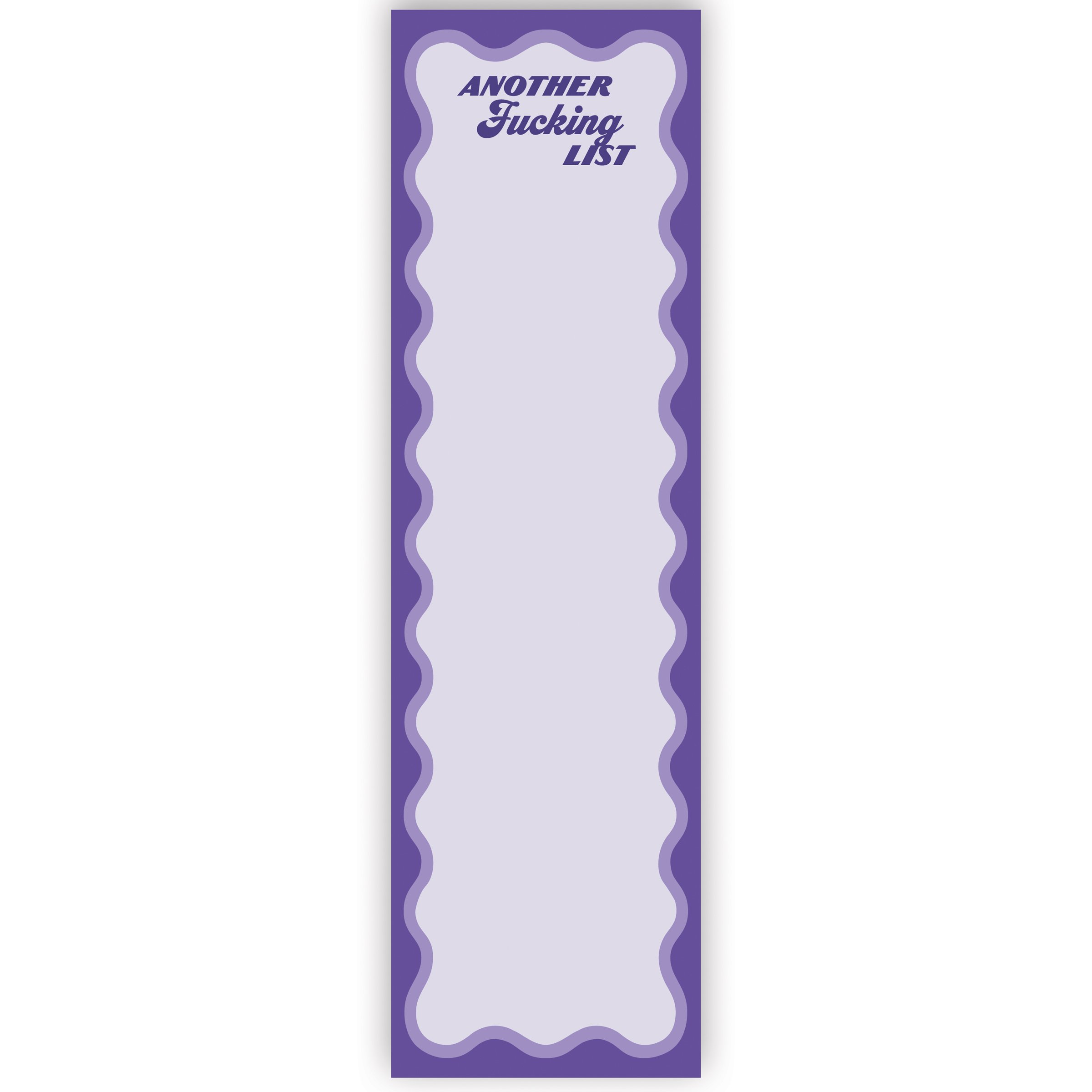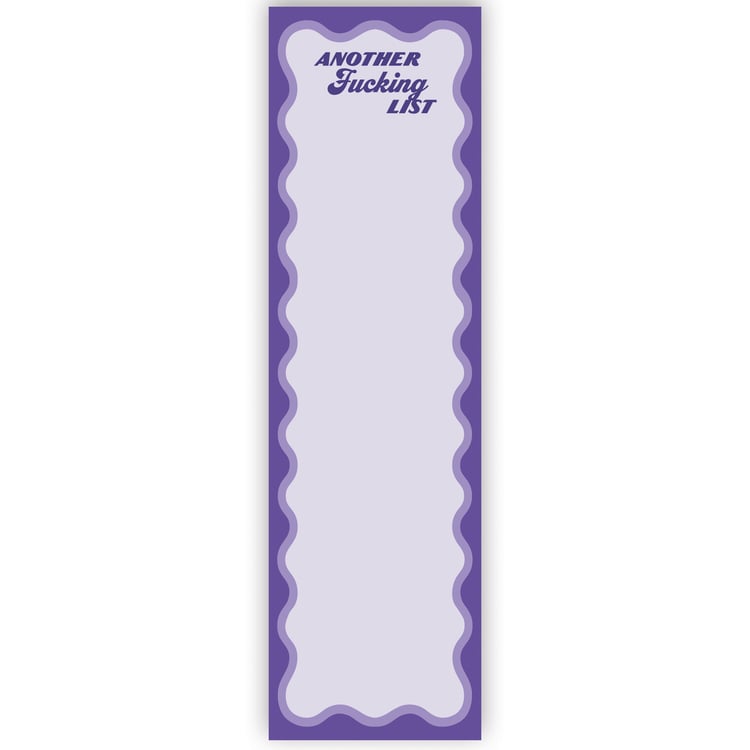 For good old-fashioned lists that don't easily get forgotten about in a notes app, this list pad features a stylish retro inspired design with an "Another Fucking List" sentiment above a space to write exactly that! Questionables list pads include 60 pages and a strong magnet to easily hang on magnetic surface for display. Proudly made in the USA. Our Another list pad is a fun gift perfect for adding personality and function to any space.