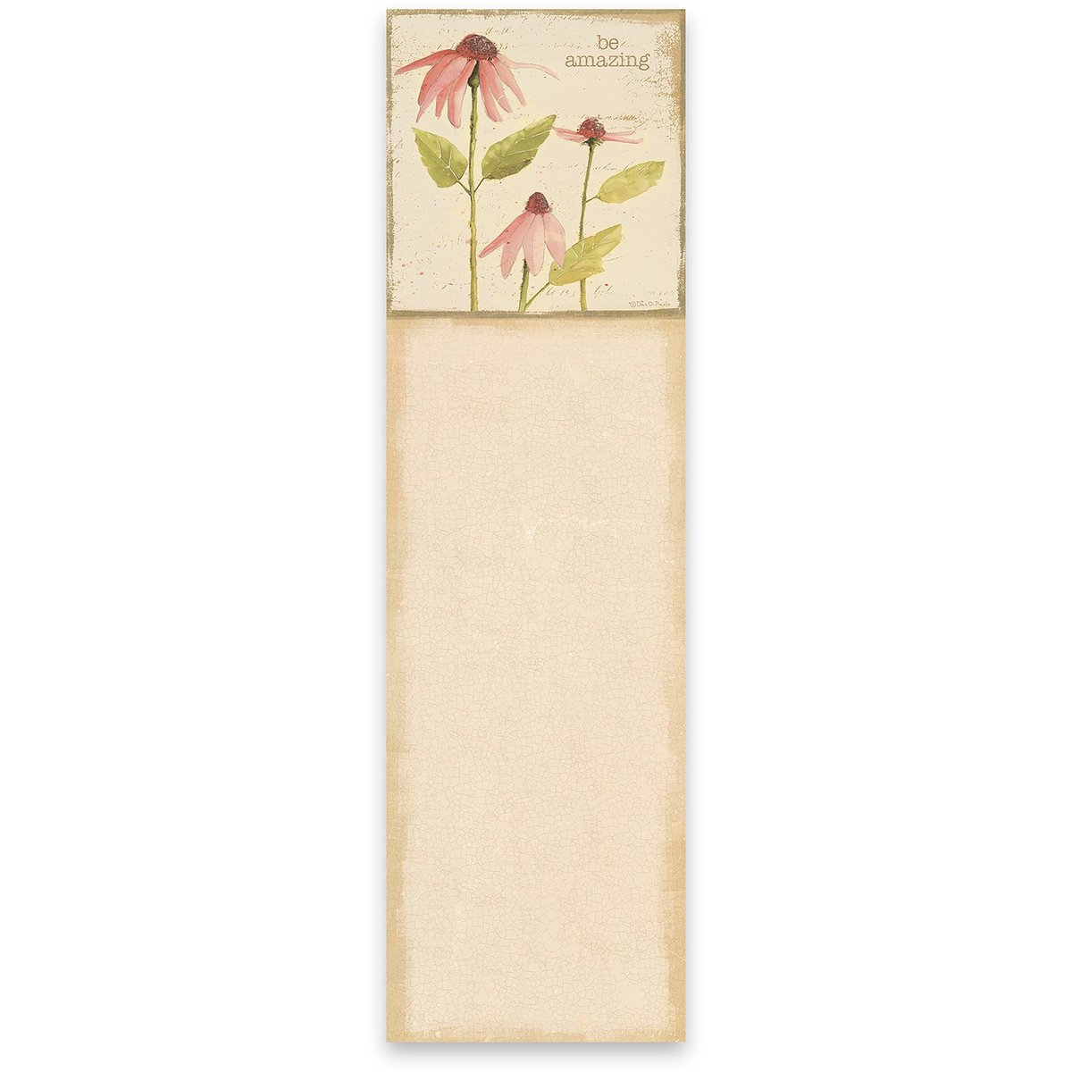 A list notepad featuring rustic coneflower designs with "Be Amazing" sentiment. Includes 60 pages and strong magnet. Made in the USA.