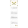 A list notepad from our Watercolor Collection displaying a design of yellow flowers and a butterfly with floral details in their wings as well as lined writing space underneath and a coordinating dragonfly design at the bottom. Design is replicated from original artwork hand painted in a watercolor style. Our Butterfly list pad includes 60 pages and a strong magnet to easily hang on magnetic surface for display. Proudly made in the USA. A garden-themed everyday accessory perfect for adding functional style to any space.
