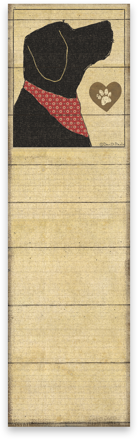 A list notepad displaying a rustic design of a dog and paw print in a heart on a slat wood background with space to write underneath. Our Dog list pad includes 60 pages and a strong magnet to easily hang on magnetic surface for display. Proudly made in the USA. A rustic pet-themed gift perfect for adding functional style to any space.