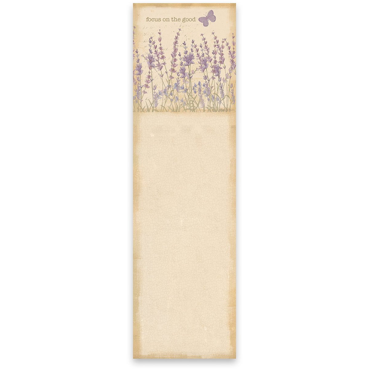 A list notepad from our Cottagecore Collection displaying a rustic design of purple flowers and a butterfly with distressed details around writing space and uplifting "Focus On The Good" sentiment. Includes 60 pages and a strong magnet to easily display on magnetic surface. Our Focus On The Good list pad is proudly made in the USA. An inspirational everyday accessory perfect for any space.
